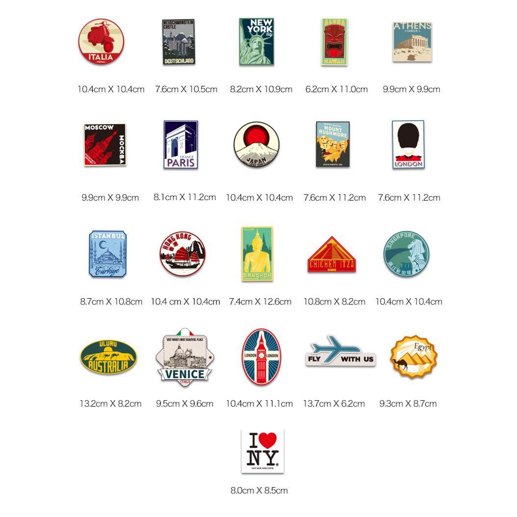 日默瓦旅游系列个性欧美城市地标行李箱贴纸怀旧复古拉杆箱子贴画