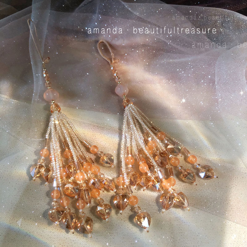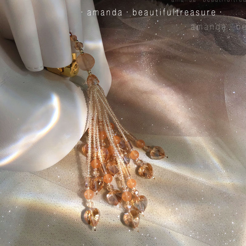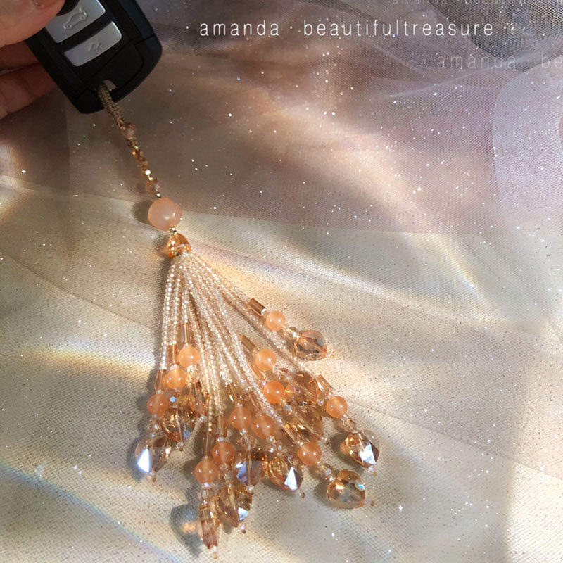 水晶包挂饰品~闪钻流苏钥匙扣橘色手机挂件U盘挂绳衣襟古风挂坠