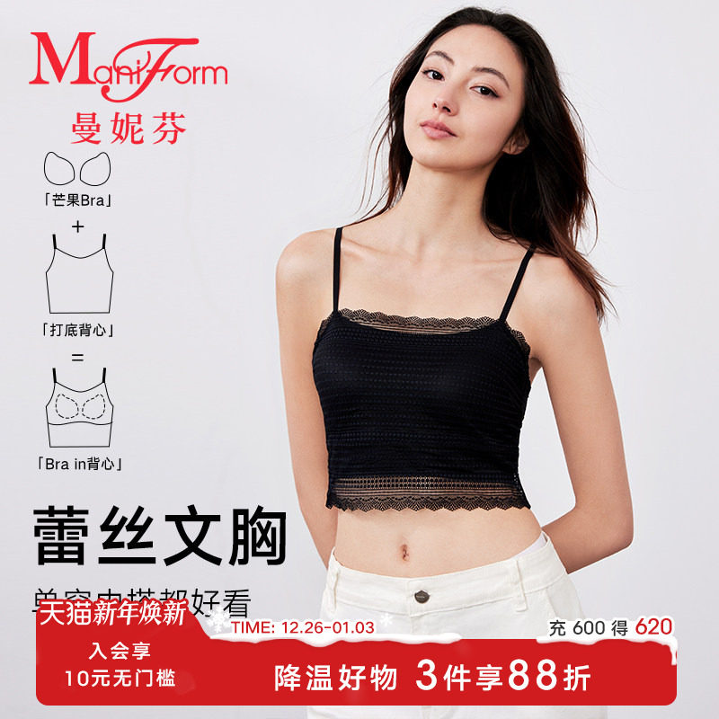 【芒果杯】曼妮芬女舒适吊带性感蕾丝抹胸内衣带杯细肩带背心上衣