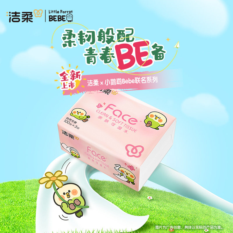 洁柔小鹦鹉抽纸3层100抽家用面巾纸餐巾纸实惠家用装可湿水香味