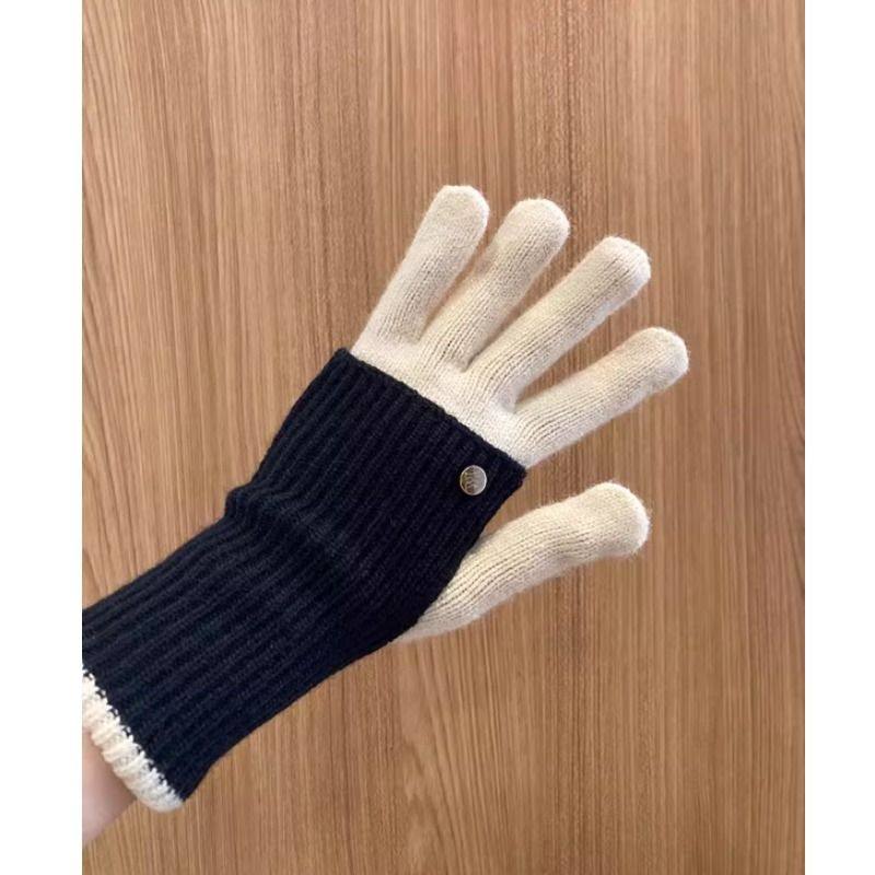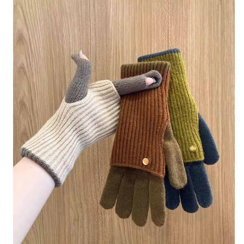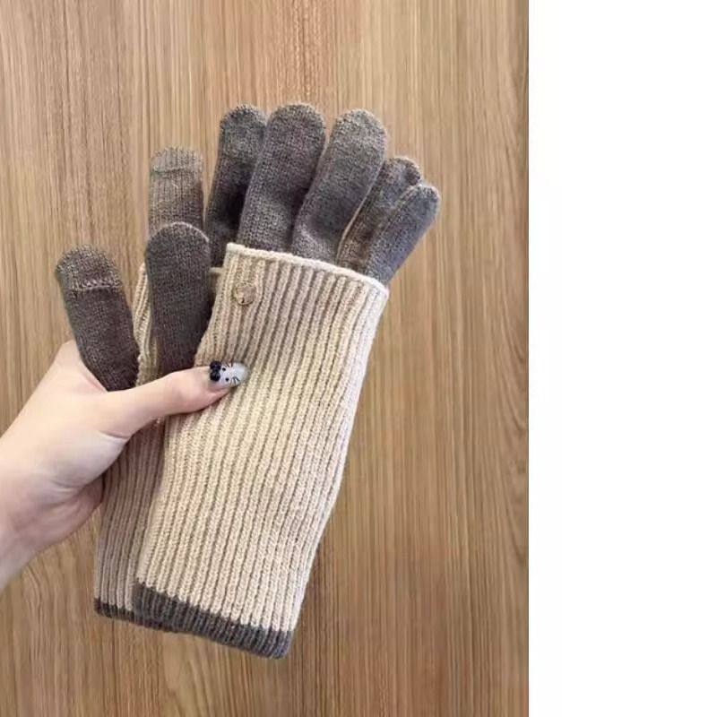 韩版长短两用针织保暖手套美拉德冬季女士漏指拼色可触屏袖套骑车