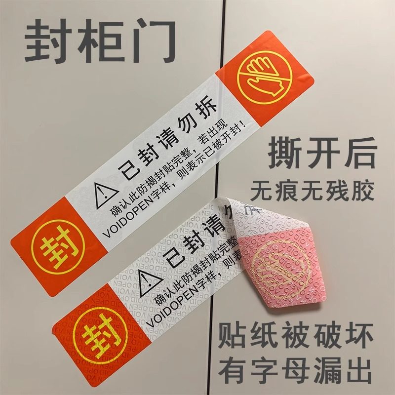 封条贴纸撕毁无效一次性装修封门马桶禁止使用麻将机防拆无痕不干胶VOIDOPEN防伪标签封柜子电表箱封口贴定制