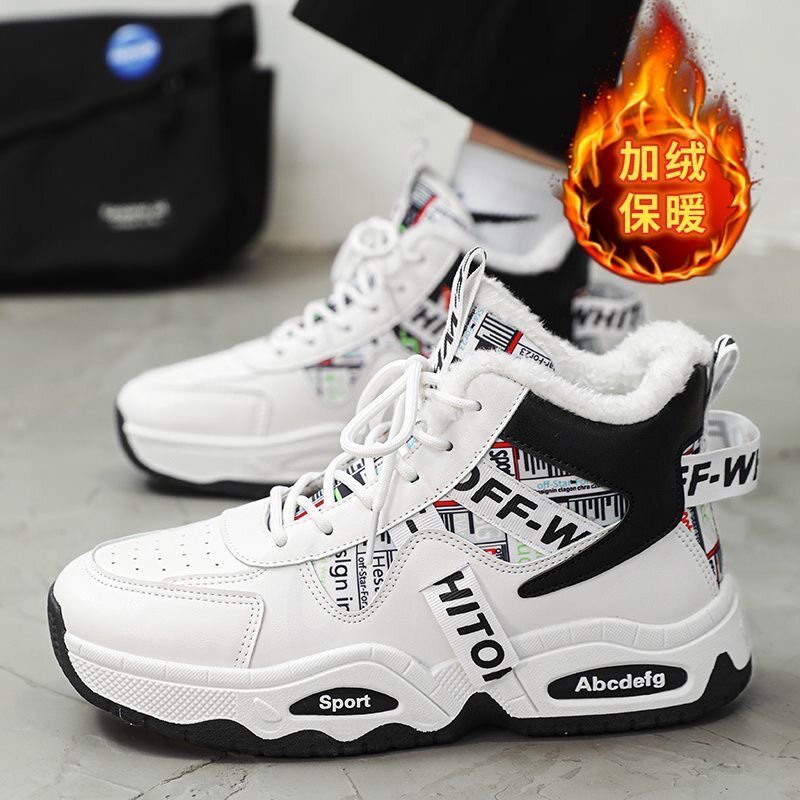 高帮男鞋冬季棉鞋保暖加绒雪地靴青少年百搭运动增高厚底老爹潮鞋