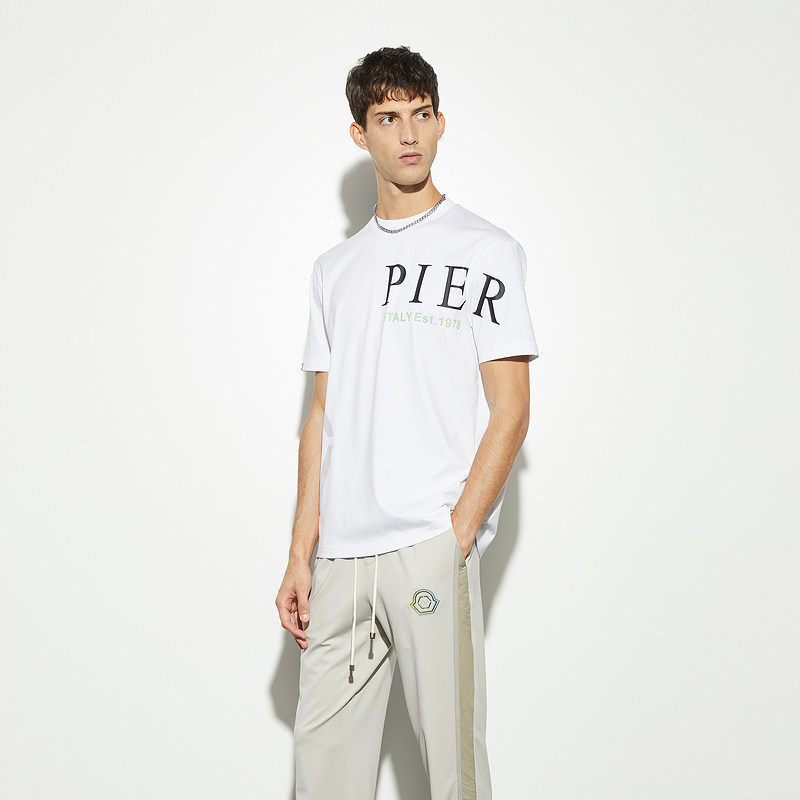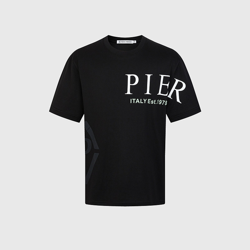 PP意大利轻奢男装2025款春夏新款纯色短袖时尚字母印花圆领T恤男