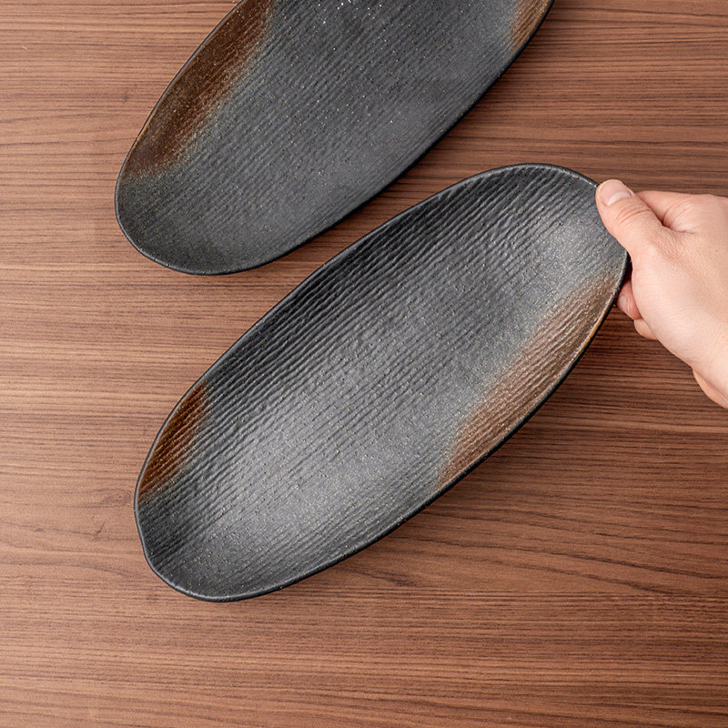 美浓烧日式进口大号12英寸椭圆盘陶瓷盘家用装菜餐具单个新款长盘