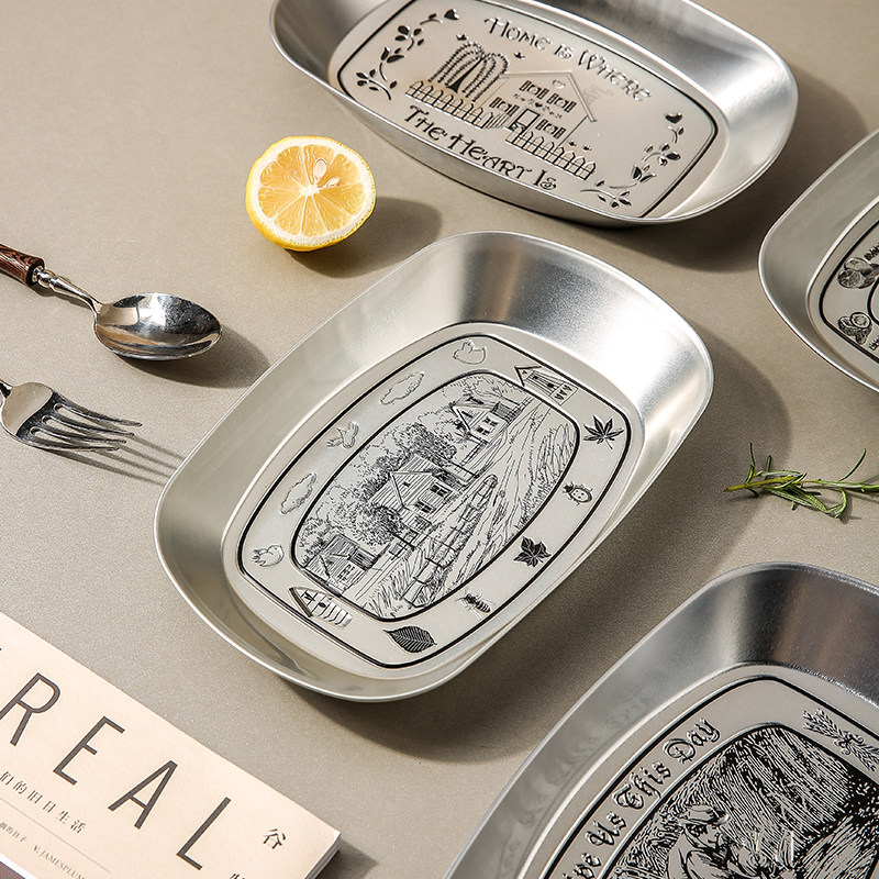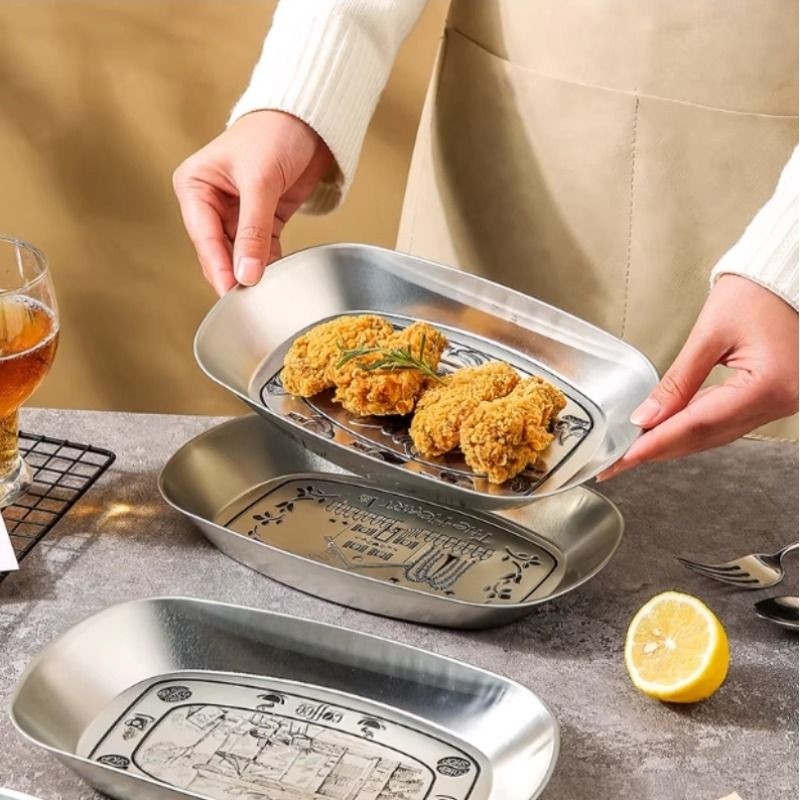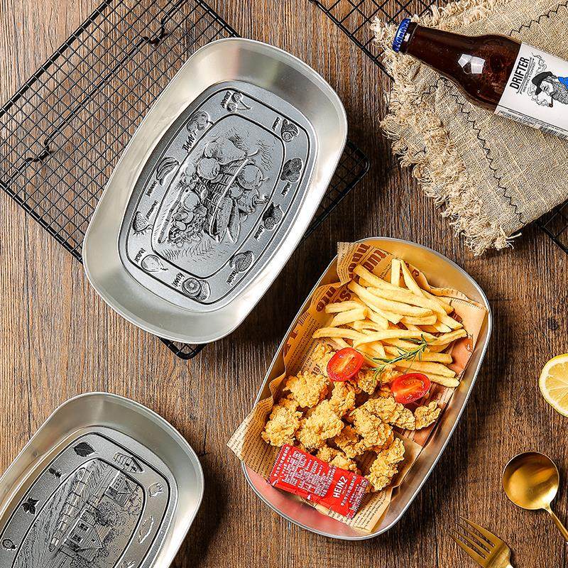 美式复古金属餐盘 船形磨砂工艺炸鸡小吃盘10英寸
