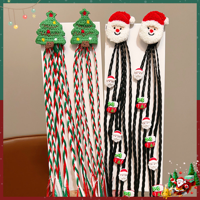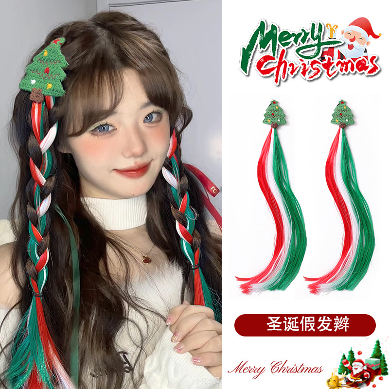 圣诞装扮假发辫子2025新款发夹发饰麻花高马尾圣诞树头饰蝴蝶结