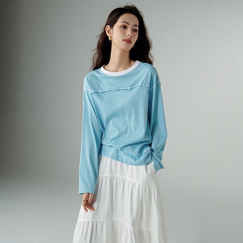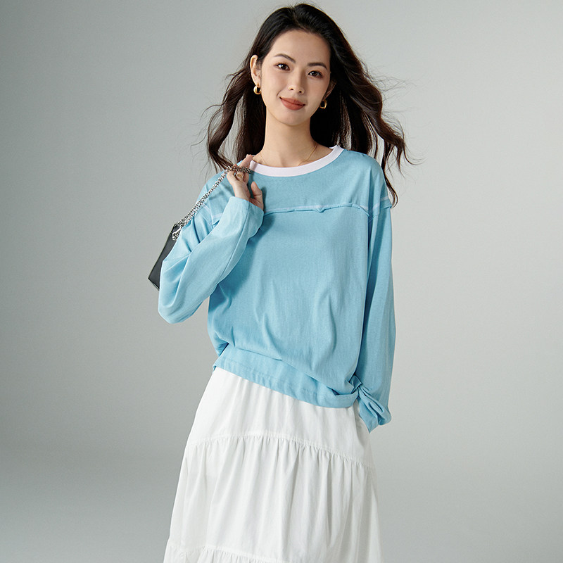 晚白2025年秋冬新款圆领气质上衣简洁大方优雅宽松T恤衫女
