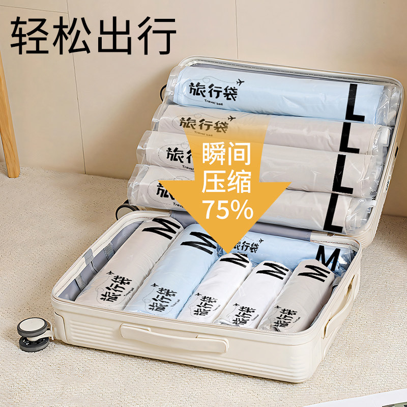 旅行真空压缩袋行李箱专用收纳整理衣物免抽气便携手卷密封打包袋