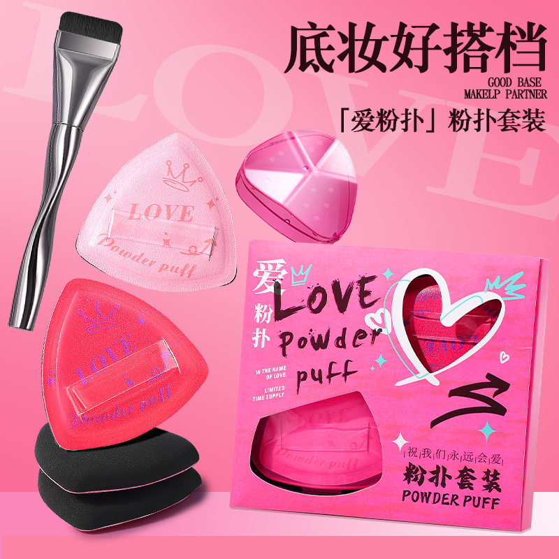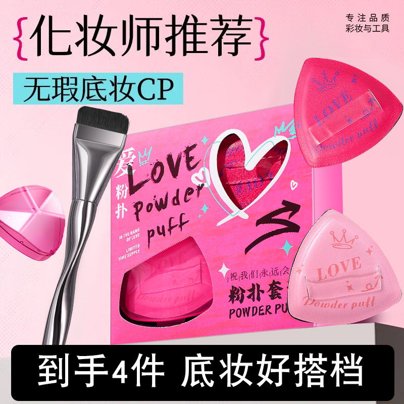 粉扑气垫粉扑遮瑕不吃粉底液不卡粉干湿两用我爱我黑凤梨收纳套装