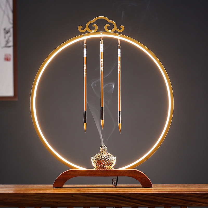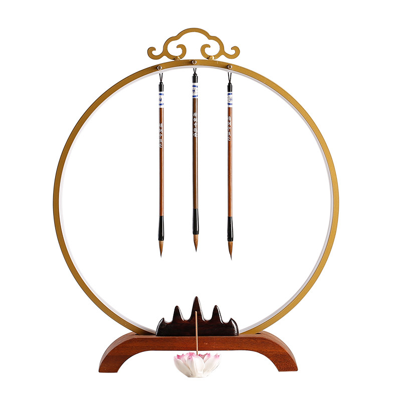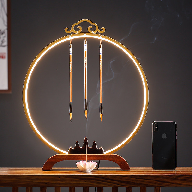 速发新中式笔架毛笔挂文书四宝套装房桌禅意摆件圆形灯饰房面家居