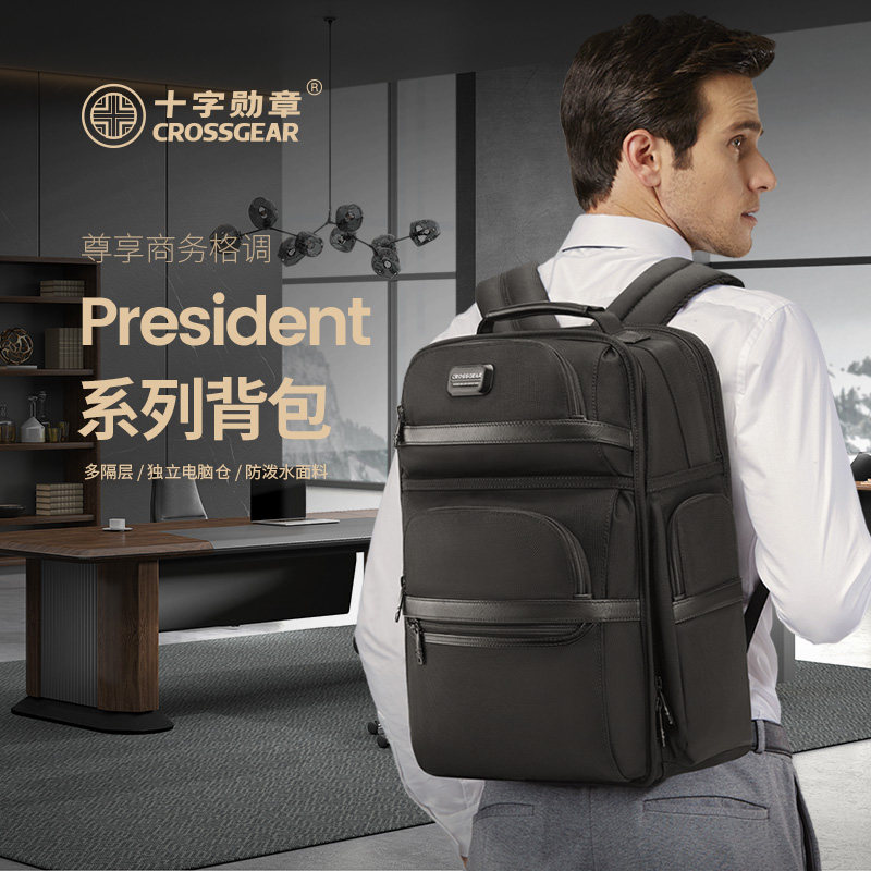 CROSSGEAR十字勋章瑞士军刀男士高端高级感商务出差旅行大容量通勤城市上班总裁145英寸笔记本电脑双肩书背包