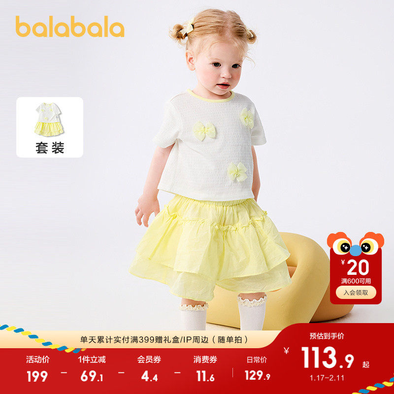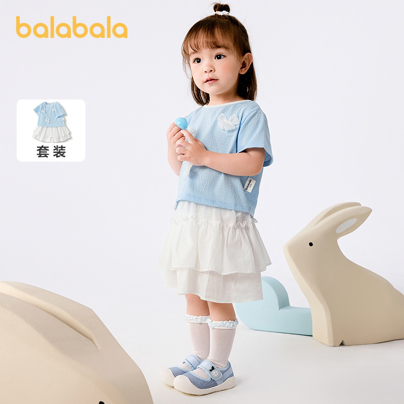 巴拉巴拉女童夏装2025新款短袖套装宝宝两件套甜美时髦弹力舒适潮