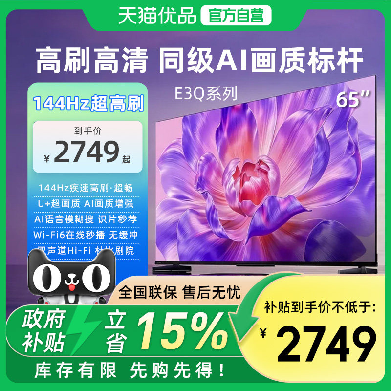 海信电视65E3Q65/75/85/英寸高刷高清画质标杆以旧换新补贴电视机