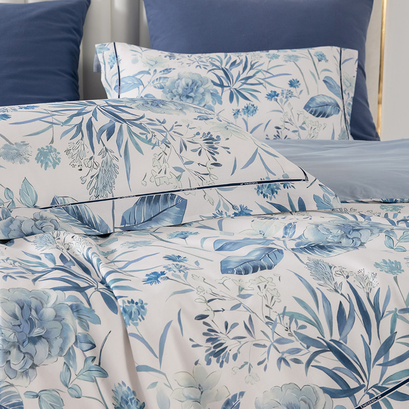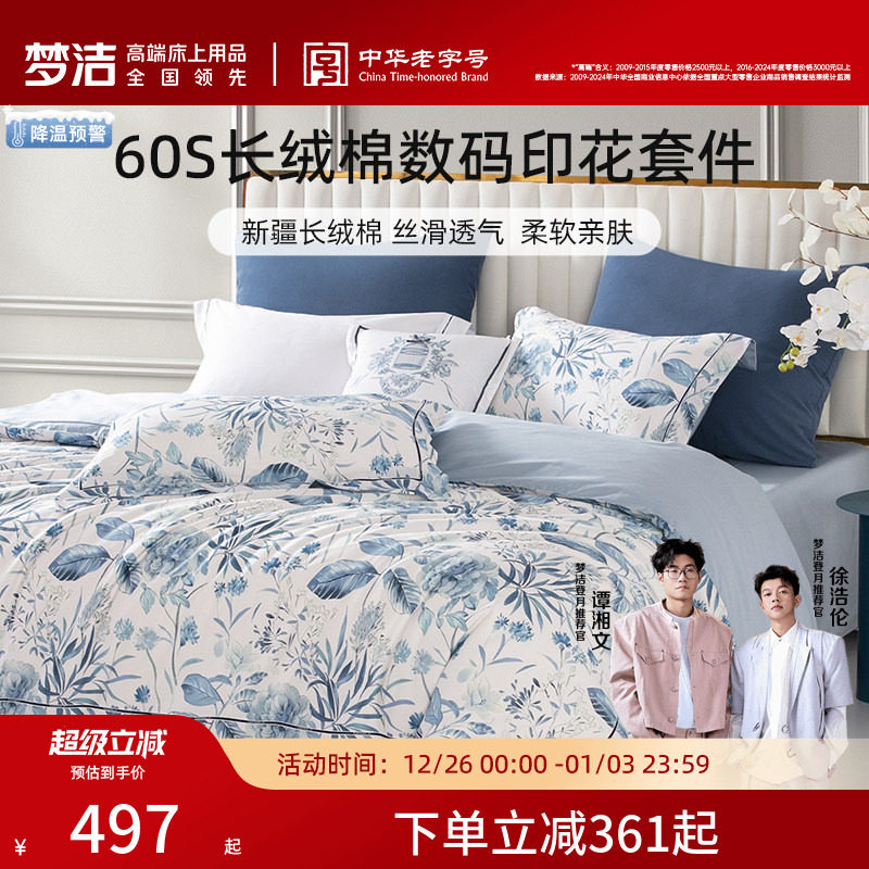 梦洁平美60支长绒棉床上四件套纯棉全棉床单被套轻奢套件花卉床品