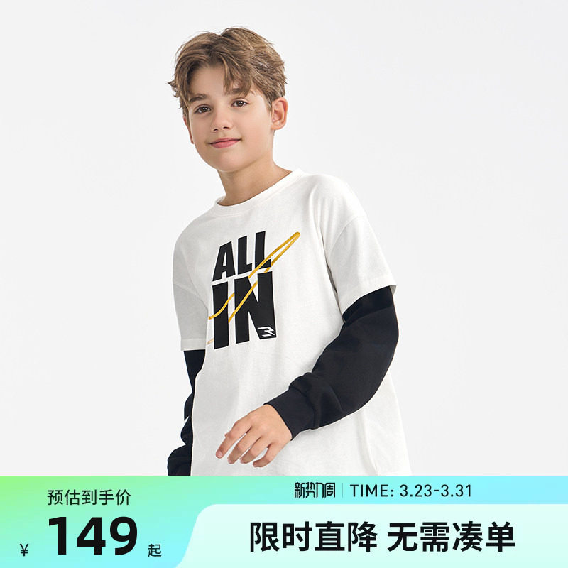 Nike 3brand儿童装男女童长袖假两件春秋新品纯棉上衣运动潮T恤潮