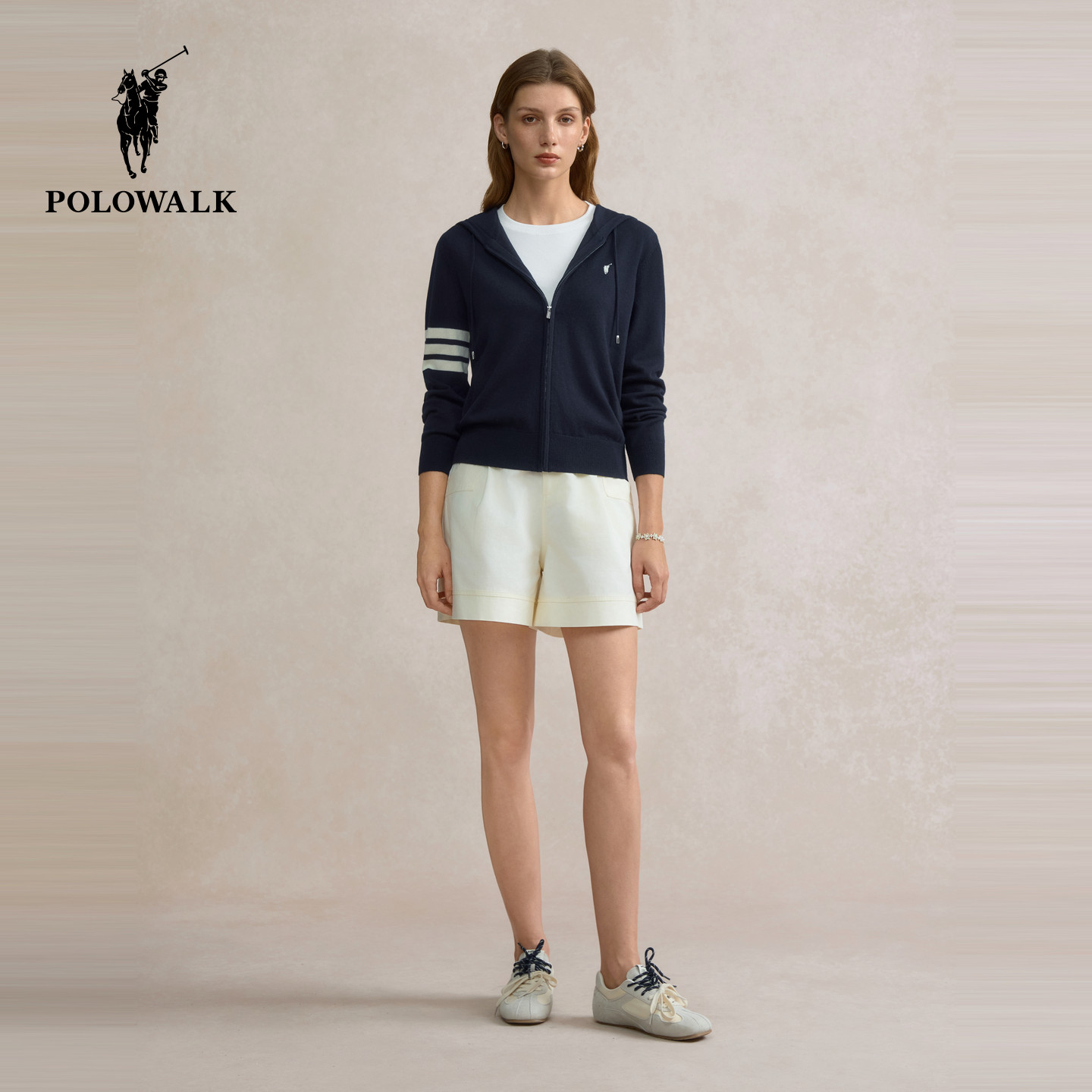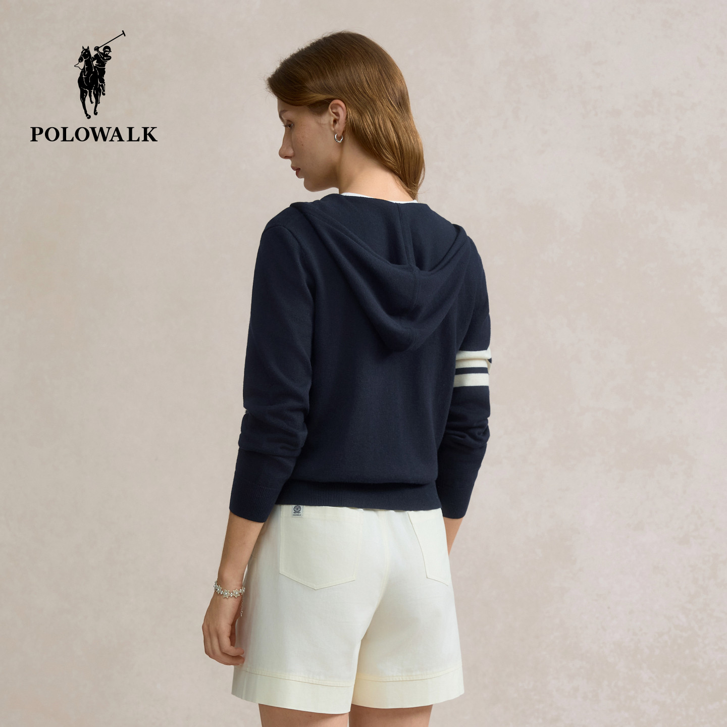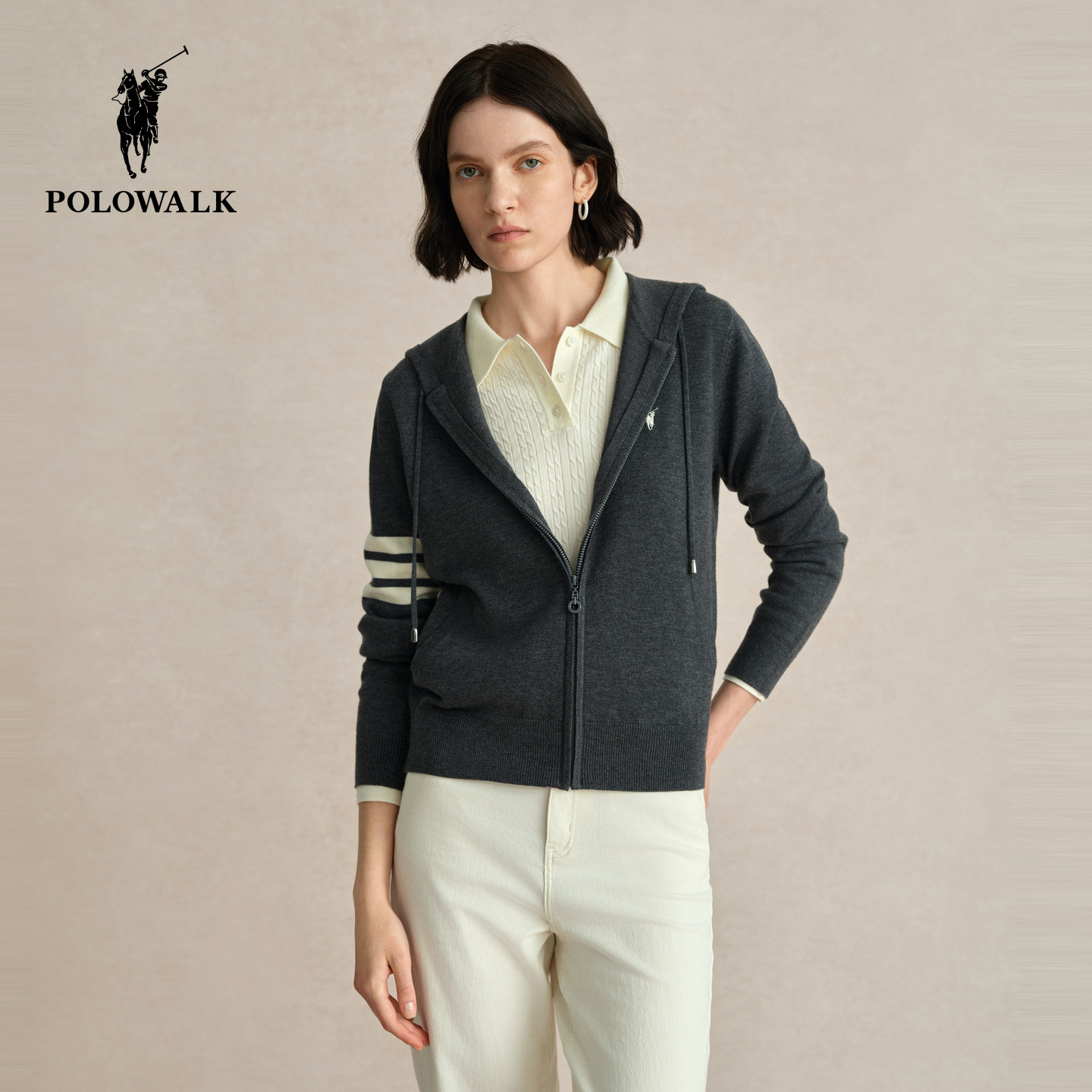 【含绵羊毛】POLOWALK针织开衫女士秋冬新款百搭休闲复古连帽外套