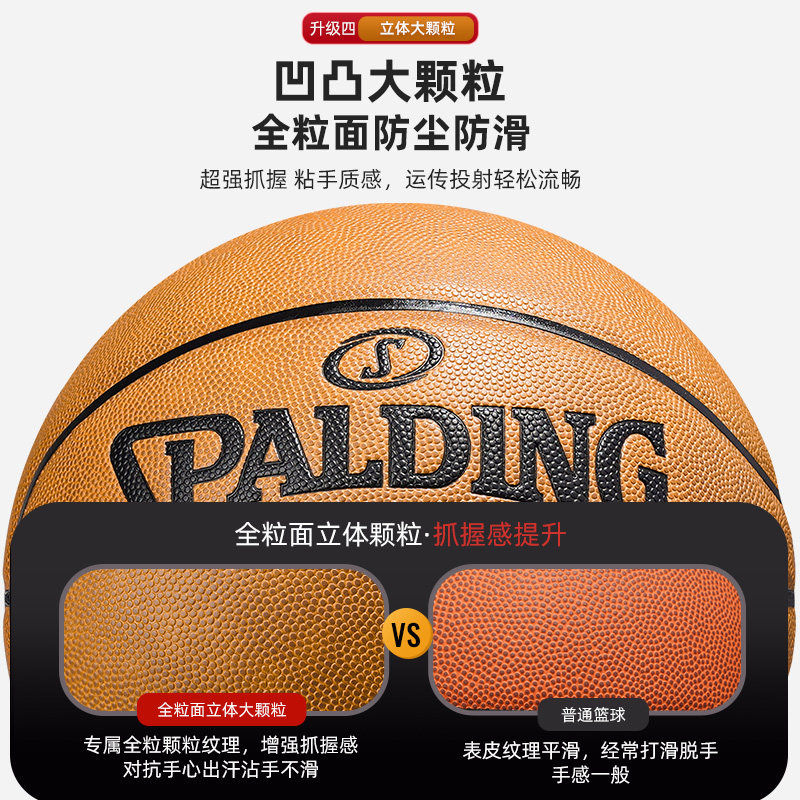 Spalding斯伯丁牛皮手感室内外SUPER 3系列联赛专业训练7号PU篮球
