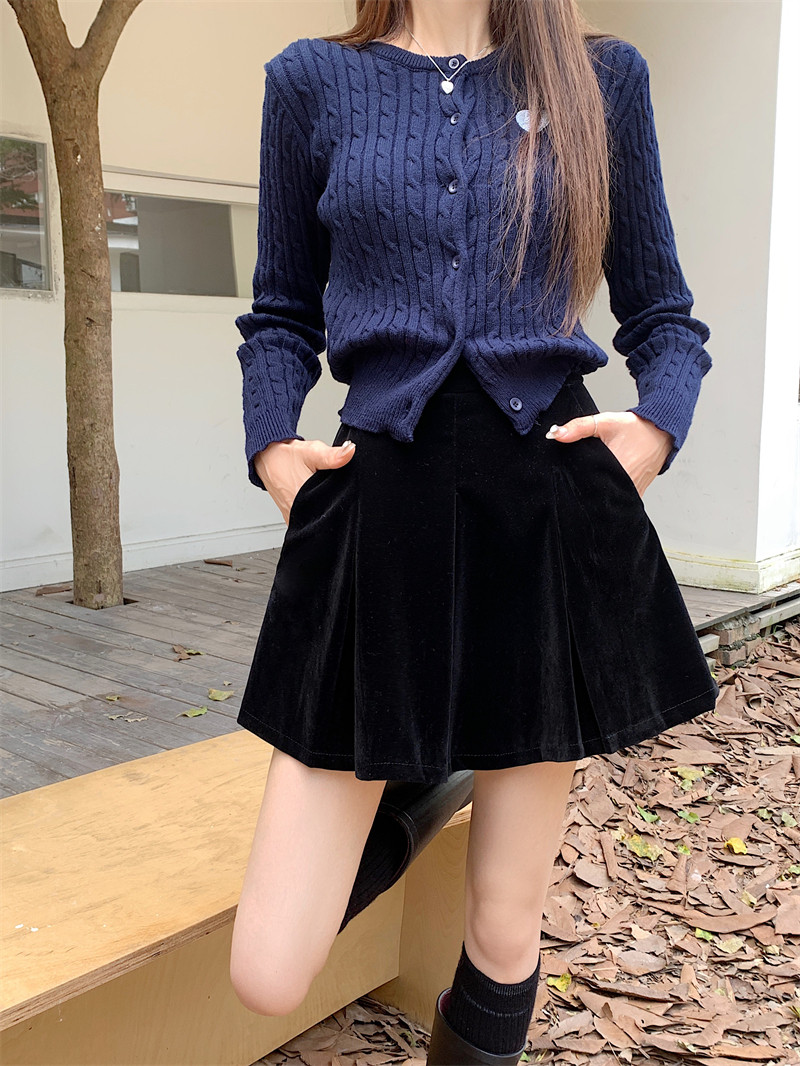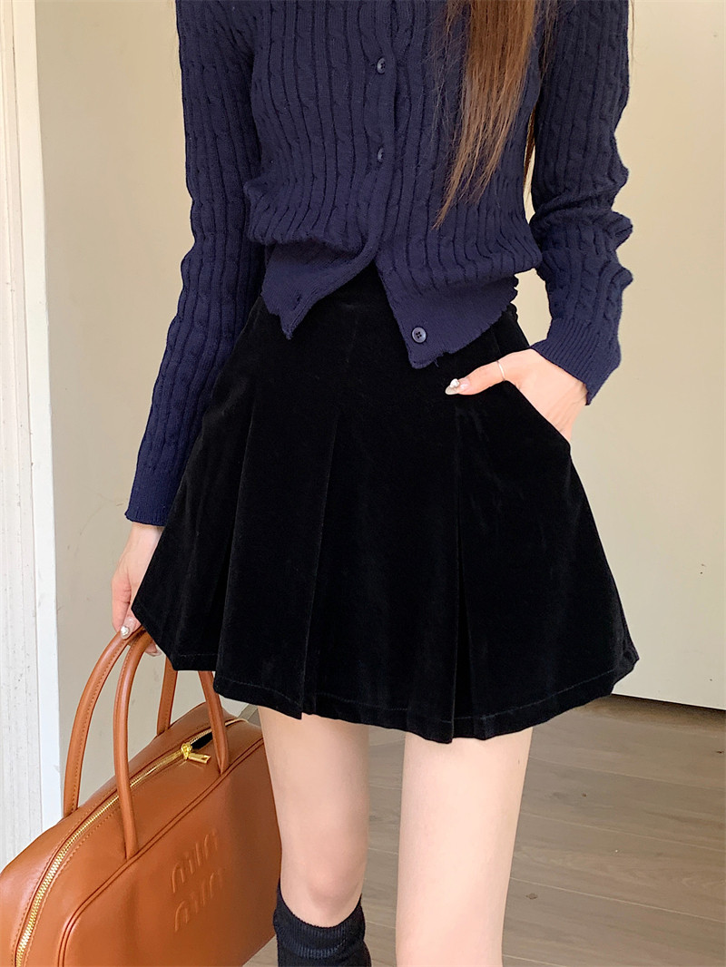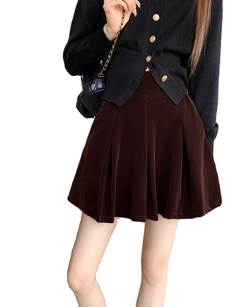 大码高腰蓬蓬丝绒半身裙女显瘦遮胯a字百褶短裙遮肚防走光裙裤冬