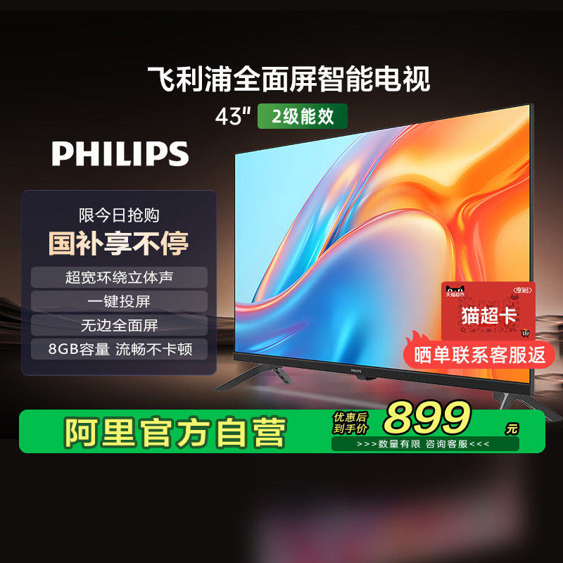 【天猫自营】荷兰皇家飞利浦 43英寸 LED全面屏液晶电视 149