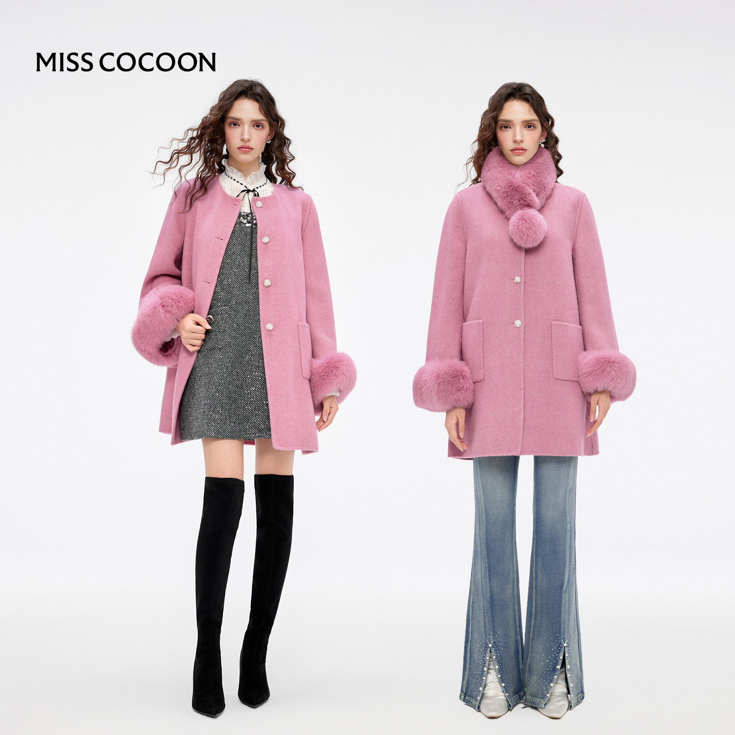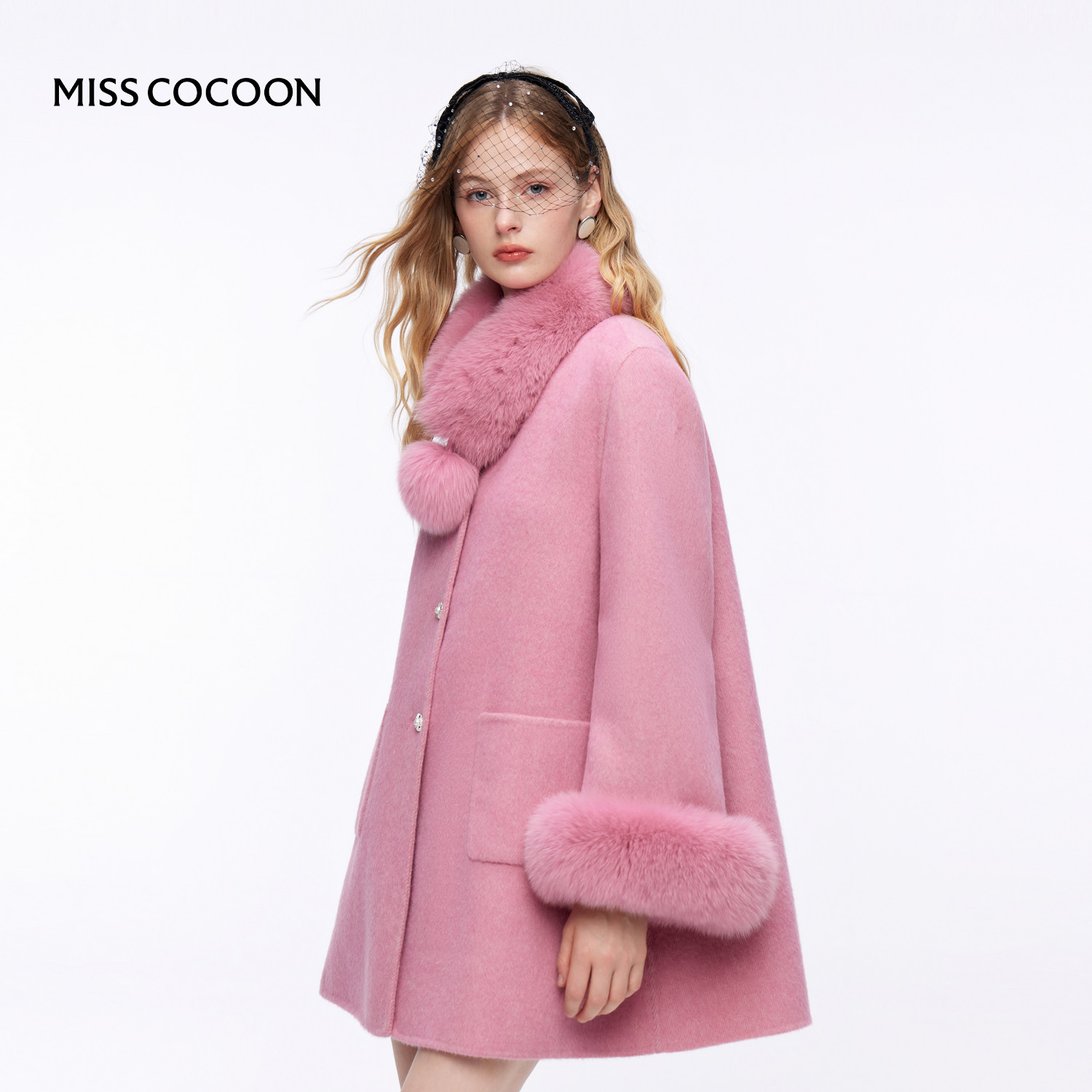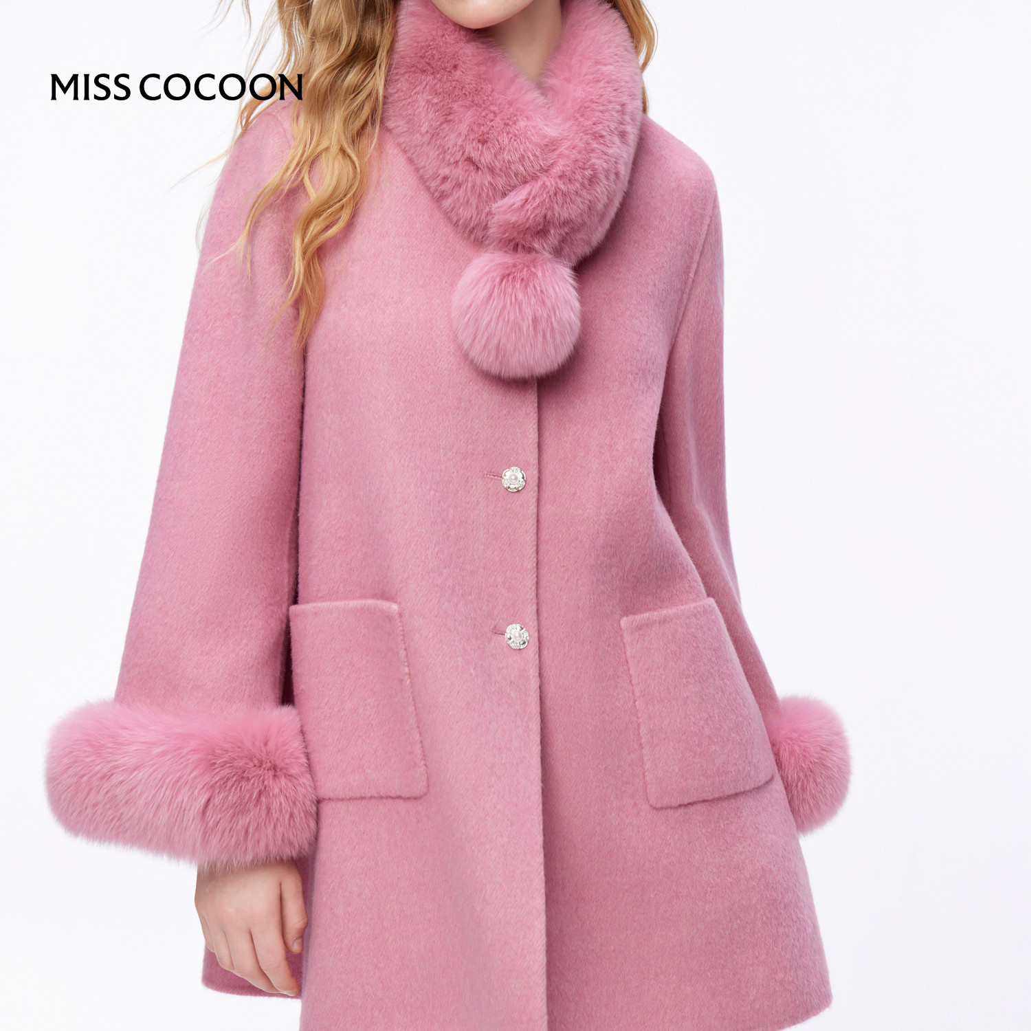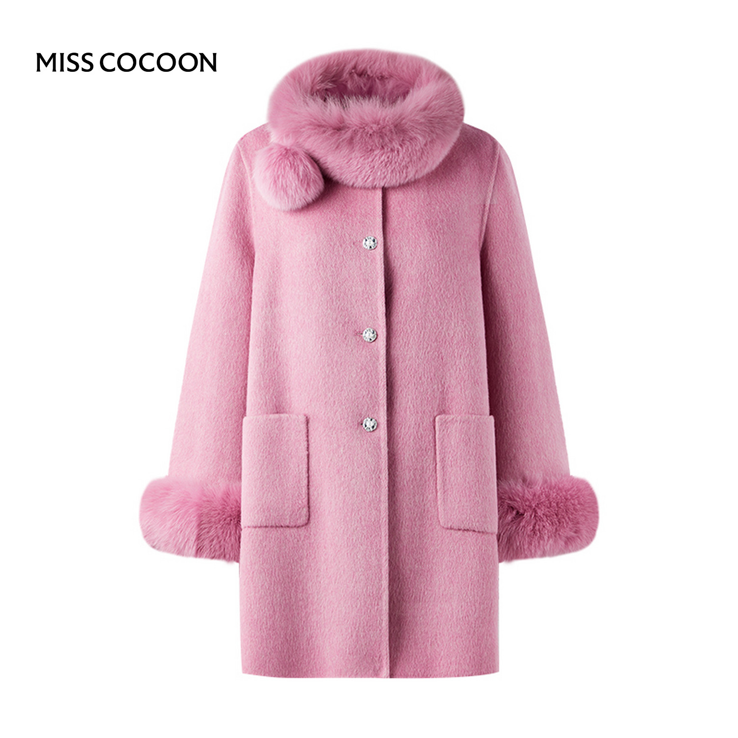 MISSCOCOON可可尼狐狸毛领呢子外套女2025秋冬新款新年绵羊毛大衣