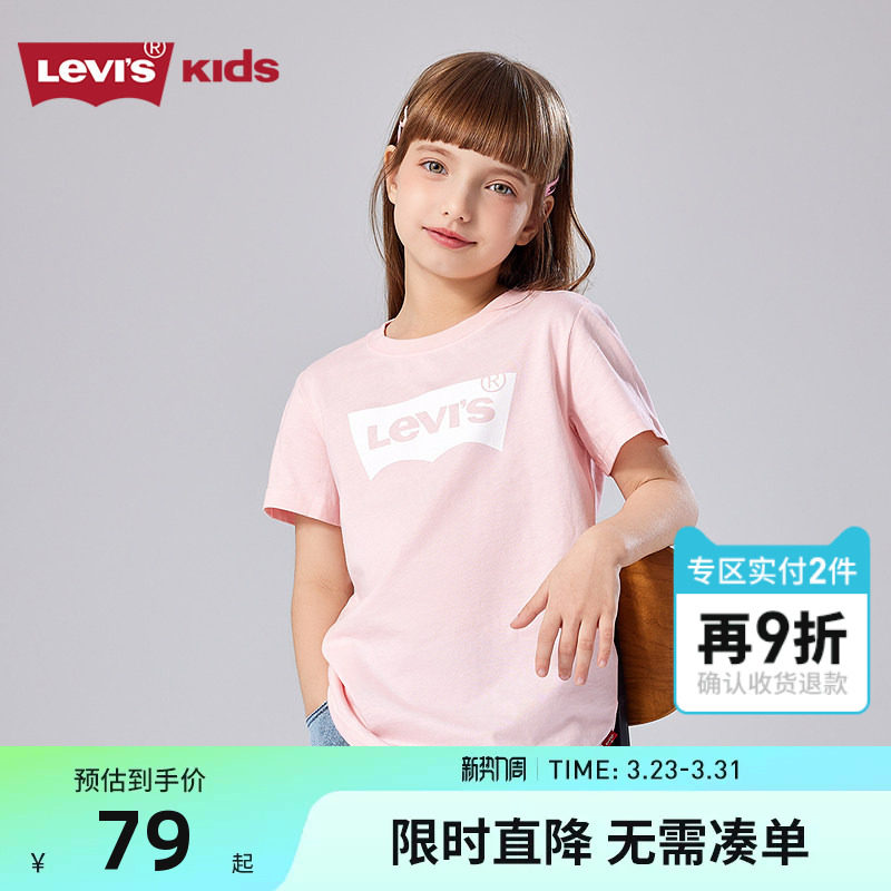 【透气棉】李维斯儿童装男女童短袖T恤2026夏季新款运动亲子上衣