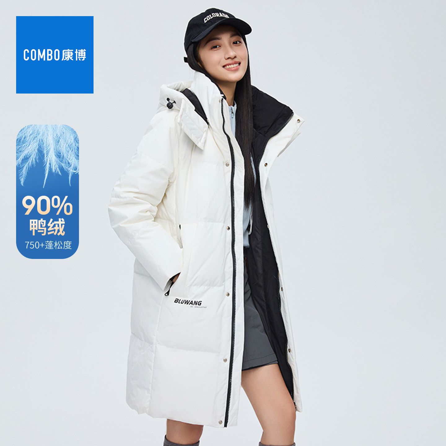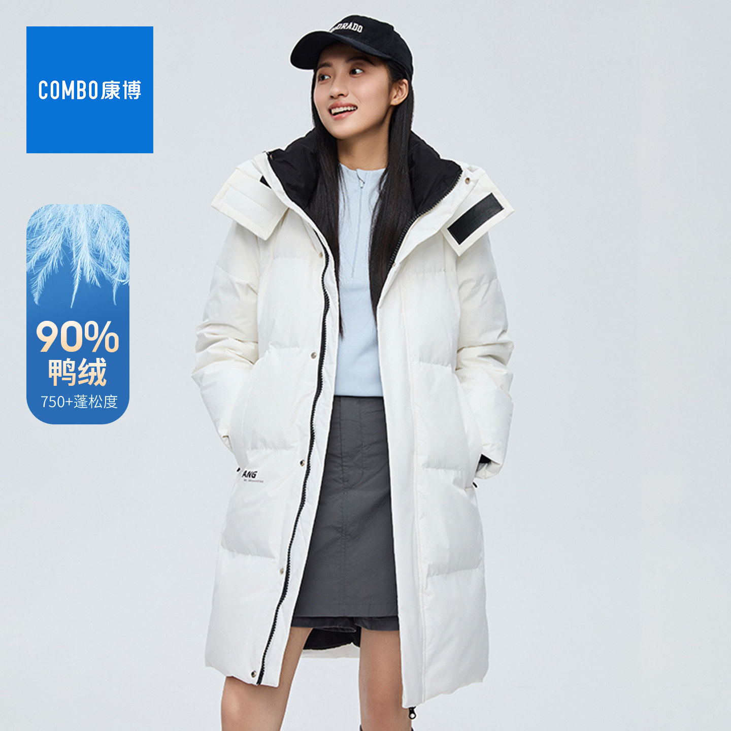 combo/康博2025冬季新中长款羽绒服女可拆连帽加厚保暖情侣外套男