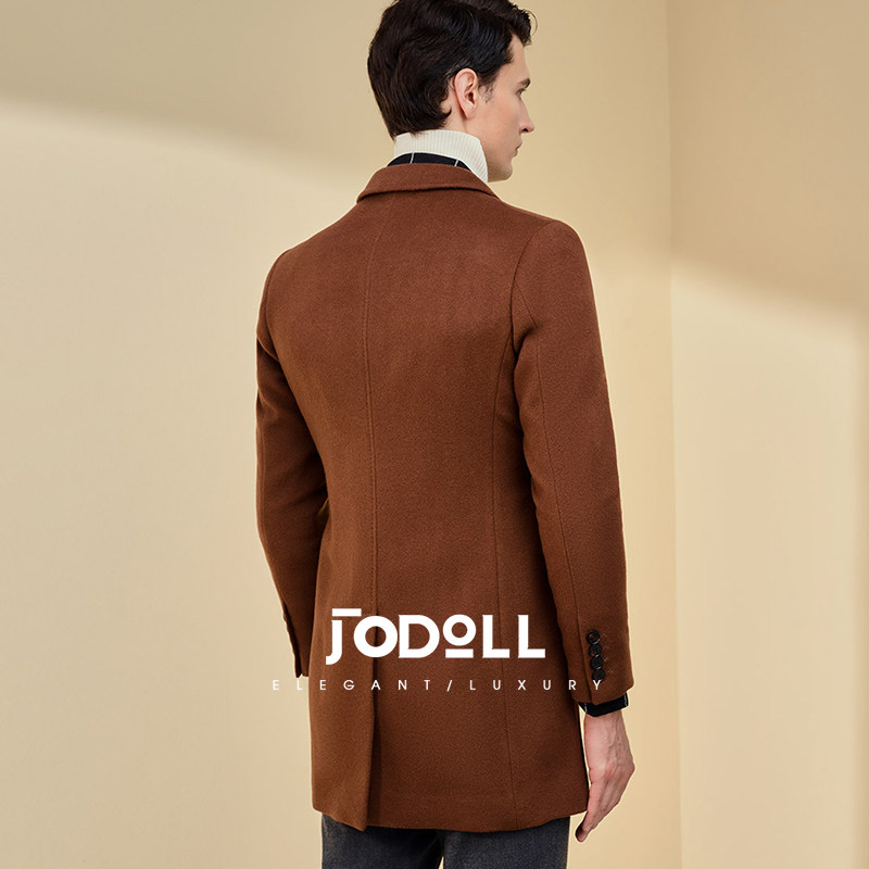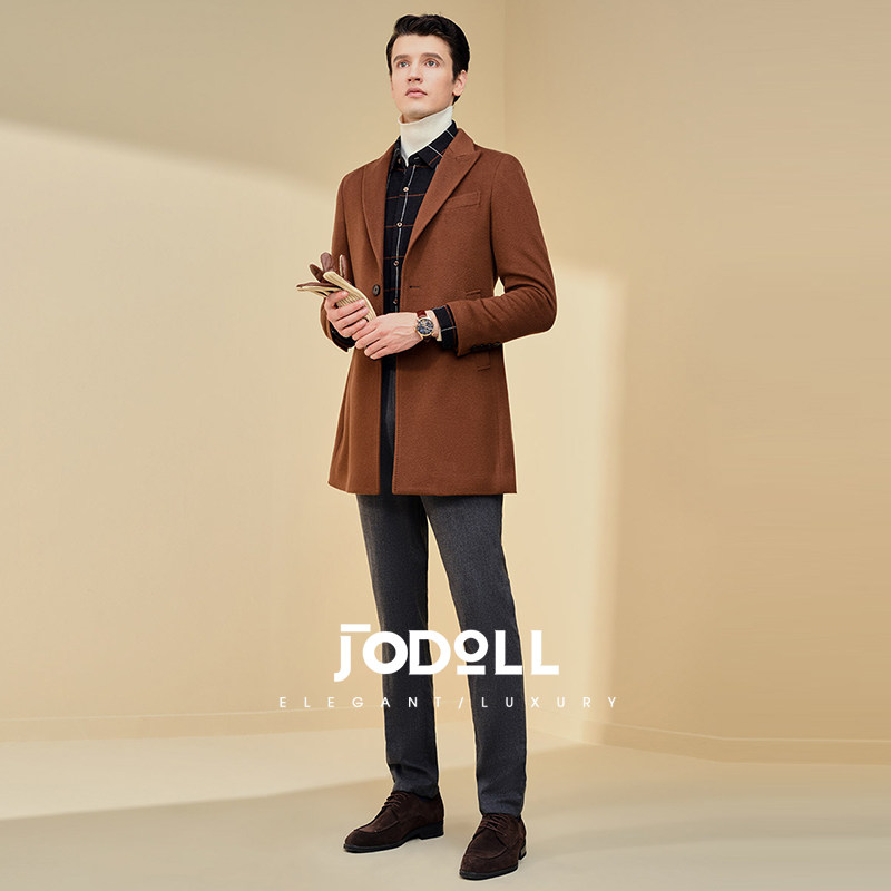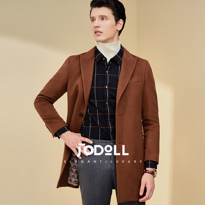 JODOLL乔顿男士中长款100%绵羊毛大衣冬季英伦修身戗驳领毛呢外套