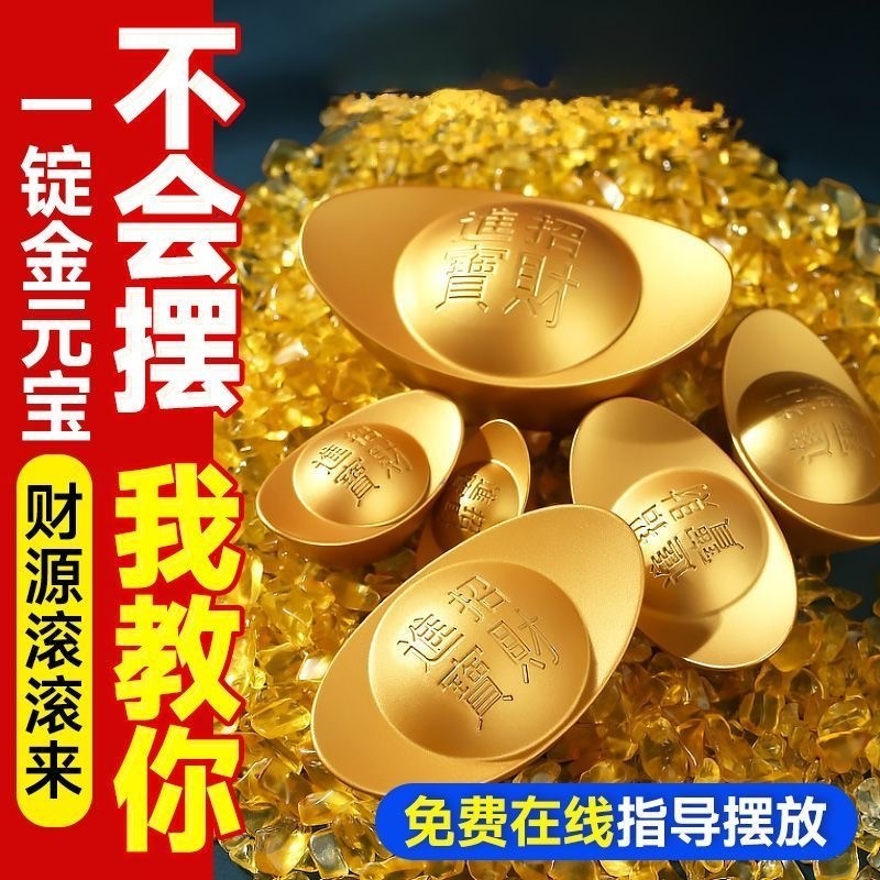 沙金元宝实心仿铜摆件仿真金条压缸客厅装饰品桌面黄铜合金