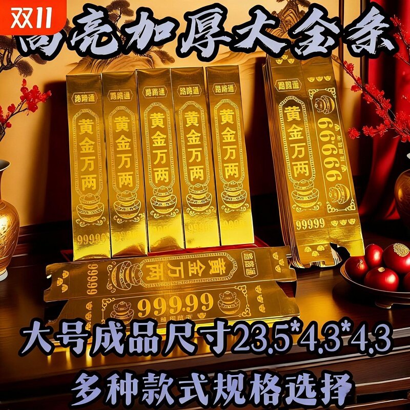 加厚金条半成品硬卡纸大号免沾仿真五福装扮用品一桶金黄金整箱