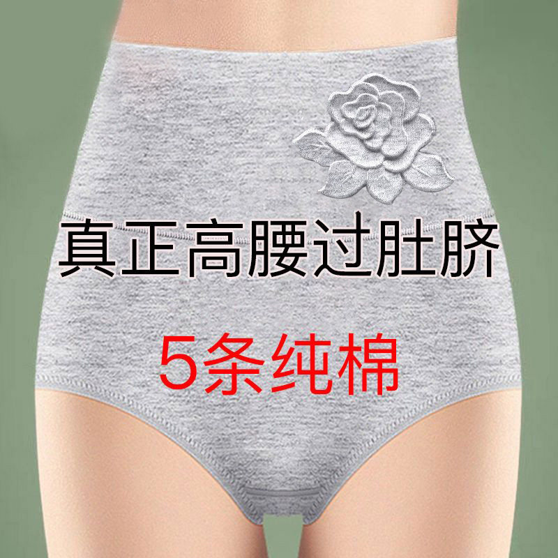 5条纯棉女士内裤女高腰收腹抗菌裆大码加大加宽松胖妈妈打底短裤.