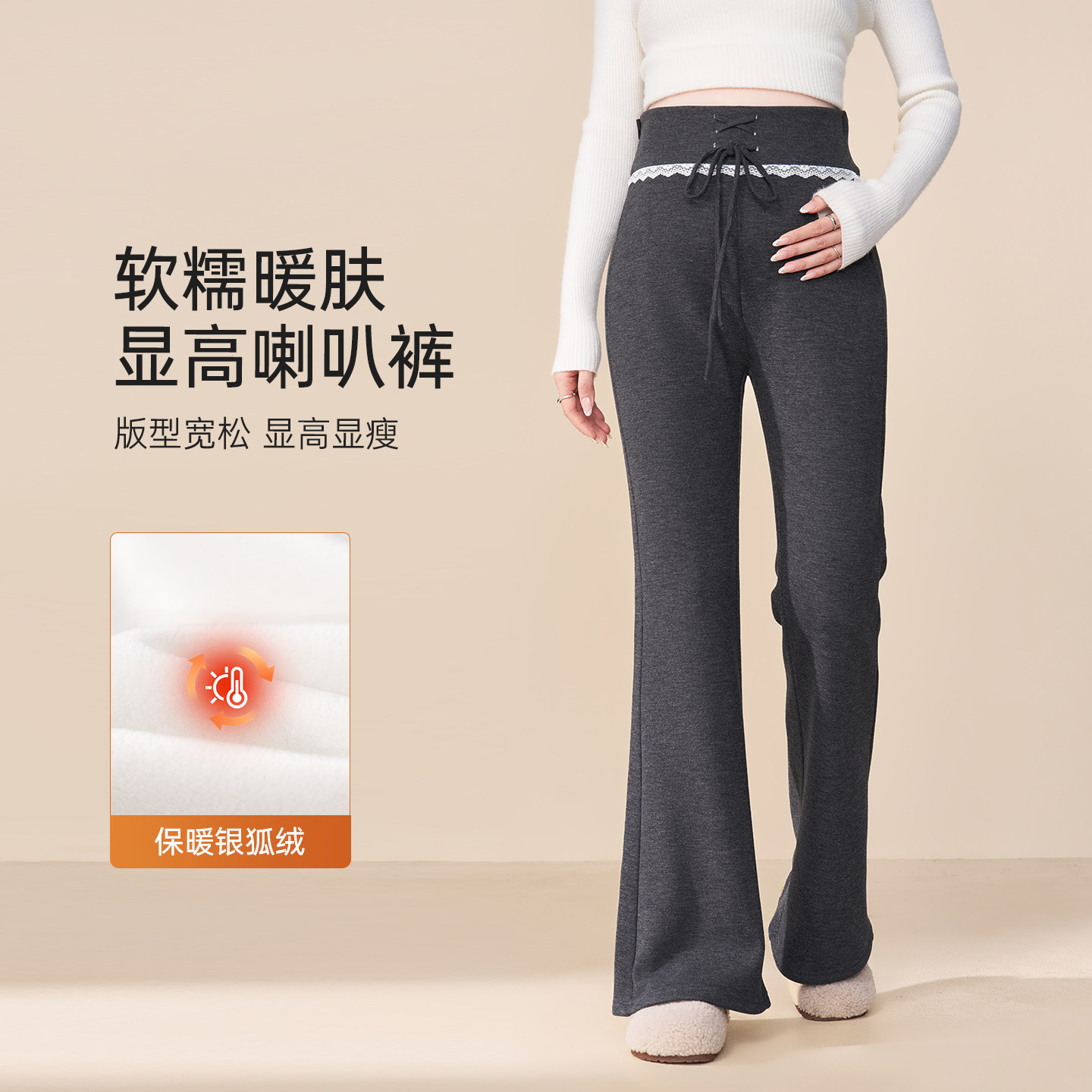 浪莎孕妇裤子春秋款秋冬加绒外穿2025新款微喇加长大码休闲阔腿裤