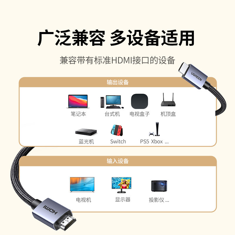 绿联hdmi高清线2.0连接电脑4k显示器笔记本hdml转换hdim电视加长