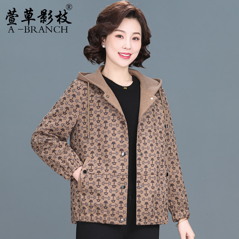 妈妈冬装洋气连帽羽绒服短款中年女时尚大码外套中老年保暖厚棉袄