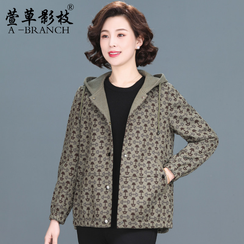 妈妈秋冬加绒加厚连帽外套女中老年人大码时尚宽松颗粒绒保暖上衣