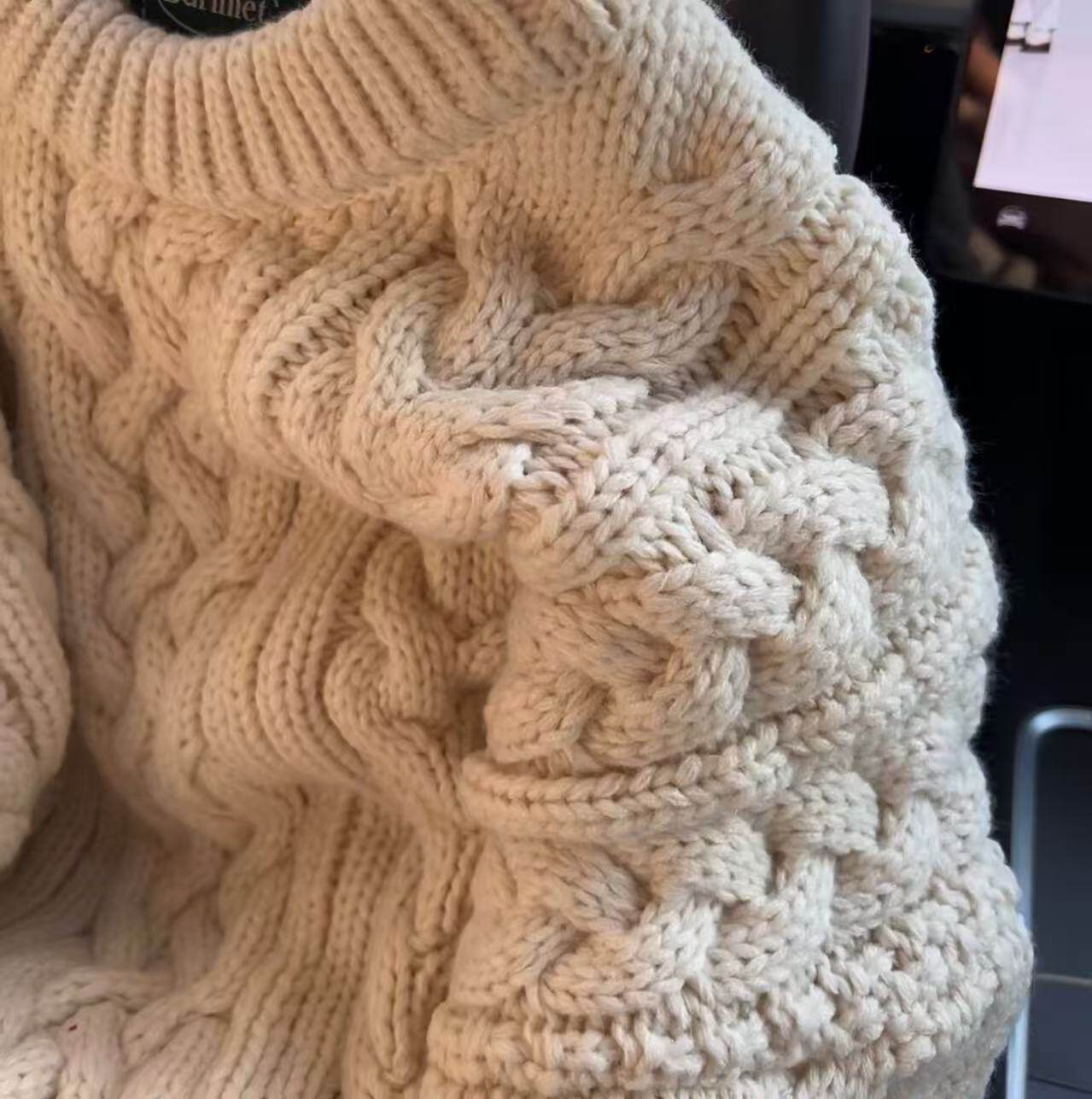 加厚版!复古白色粗针麻花套头毛衣女冬季新款宽松慵懒风针织上衣