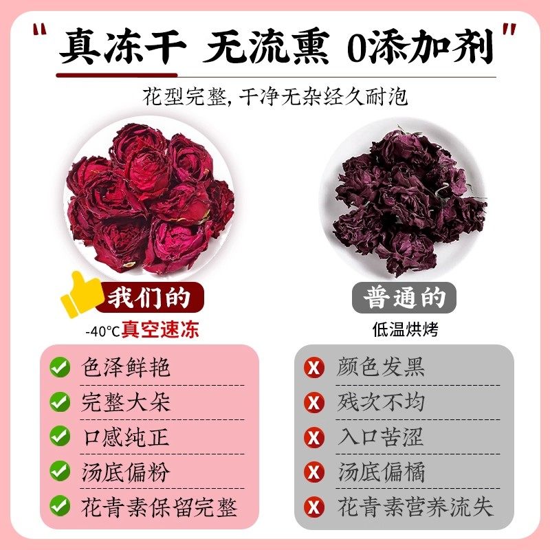 云南墨红玫瑰花茶官方旗舰店大朵冻干重瓣玫瑰花疏肝解郁养颜花瓣