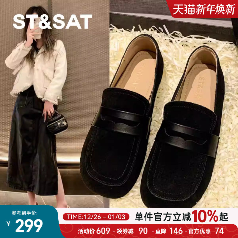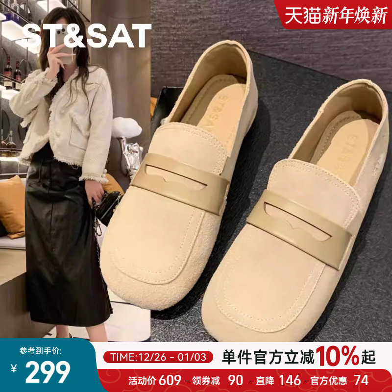 星期六时尚真皮上班通勤小皮鞋女2024秋冬新款平底舒适豆豆鞋单鞋