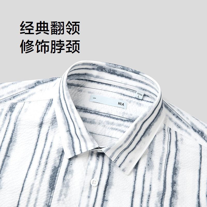 HLA/海澜之家山不在高系列短袖时尚衬衫26春夏新清新竖条纹短衬男