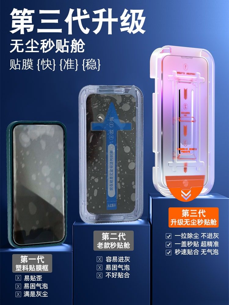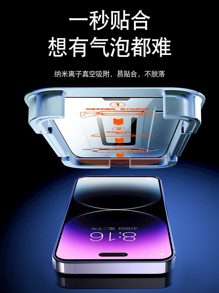 无尘仓自动除尘苹果秒贴神器适用13Pro防爆iPhone14ProMax手机贴膜12pm高清15防指纹新款11p防偷窥全屏钢化膜