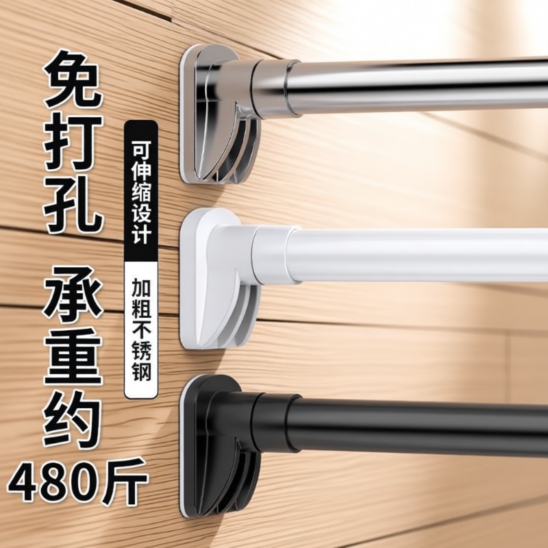 免打孔伸缩杆阳台晾衣架窗帘杆子挂衣杆浴帘晾衣杆可伸缩门帘免钉