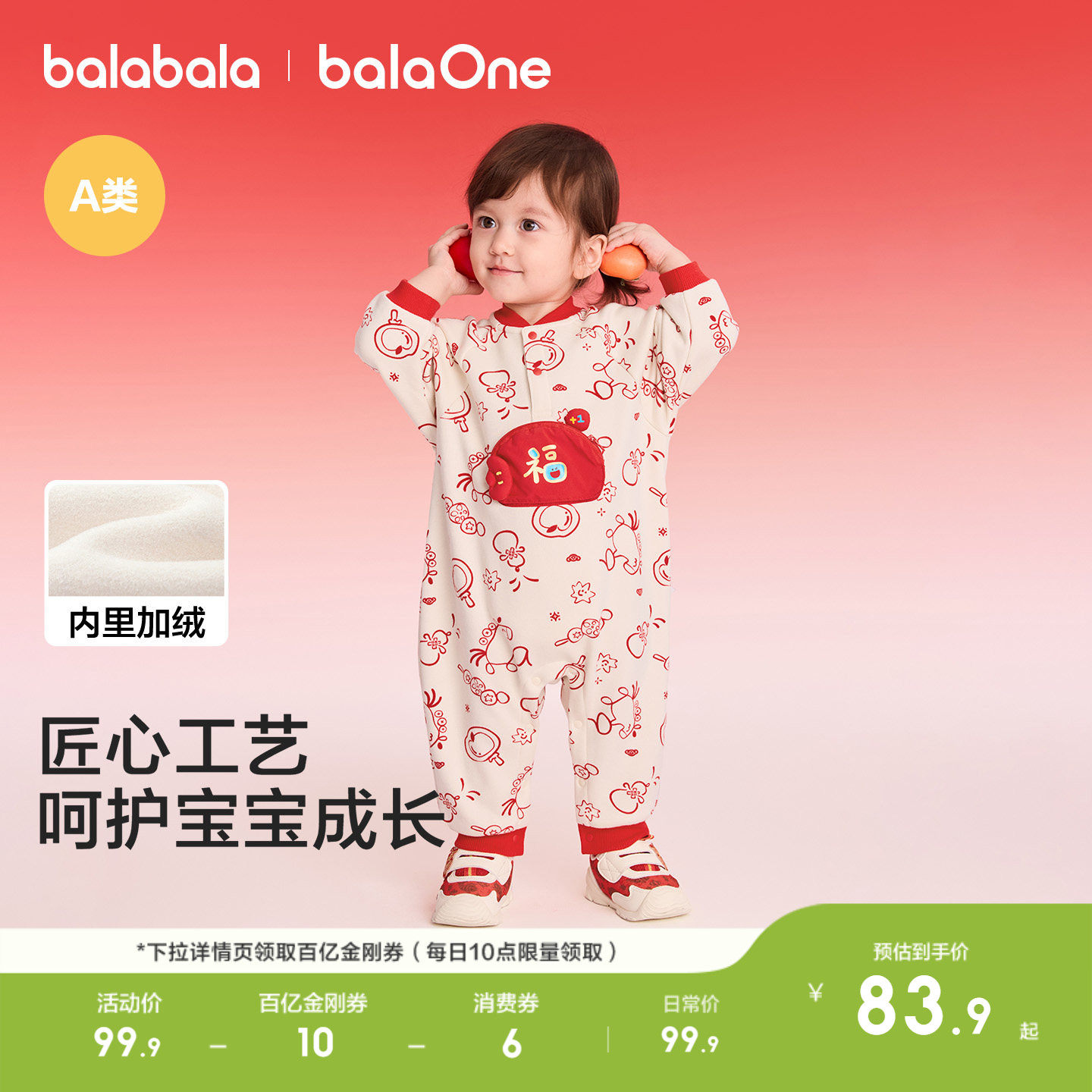 巴拉巴拉童装宝宝连体衣新生婴儿男衣服女2026新款红色加绒上衣萌