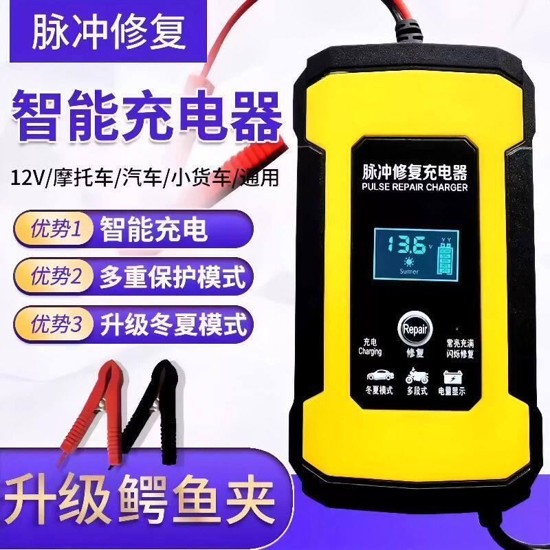 12V伏汽车电瓶充电器摩托车轿车货车蓄电池充电器智能通用充电机