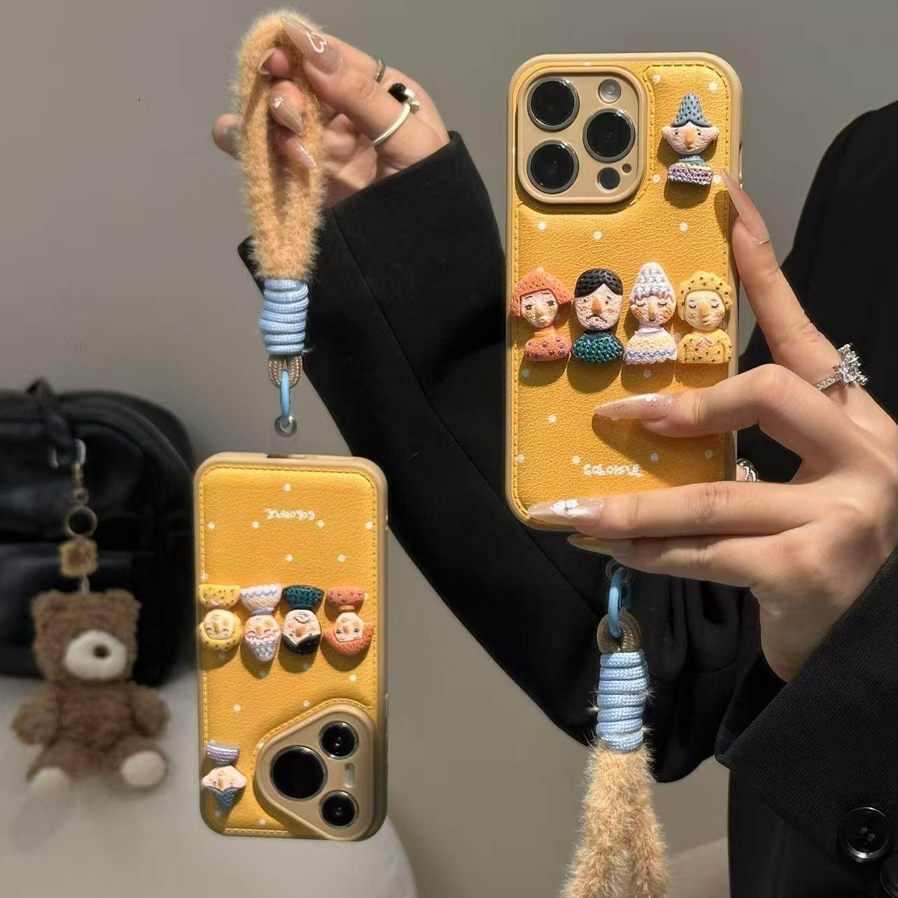 立体人偶公仔适用苹果17promax手机壳彩绘新款iphone16pro秋冬15pm卡通时尚创意14情侣高级感女款13全包防摔