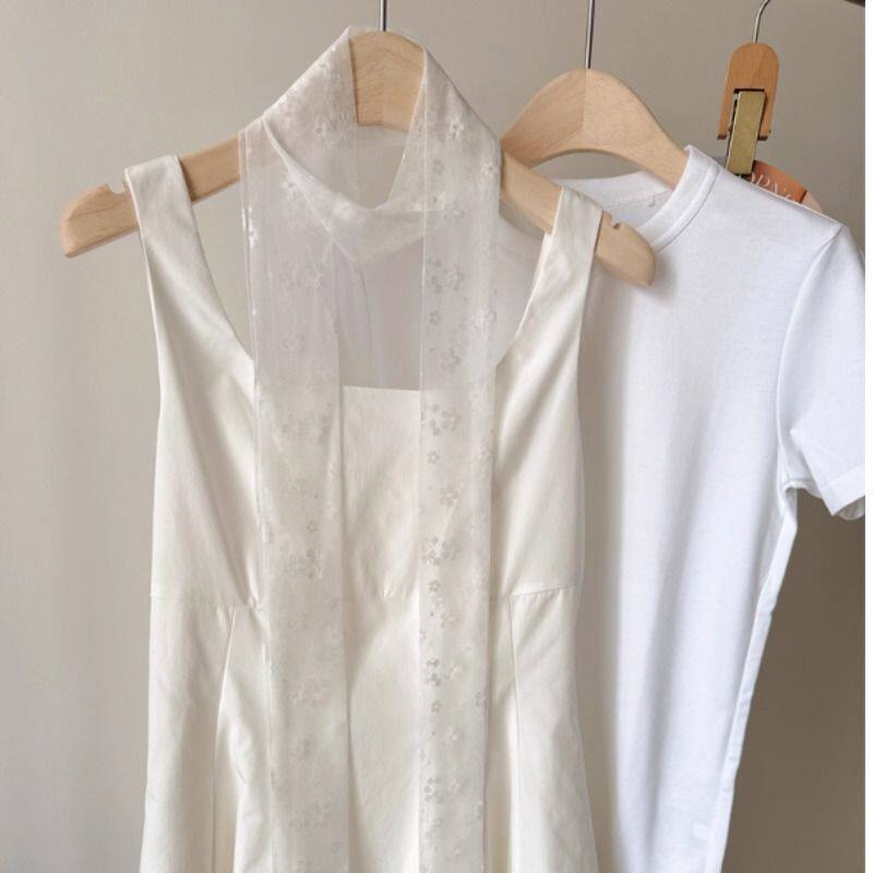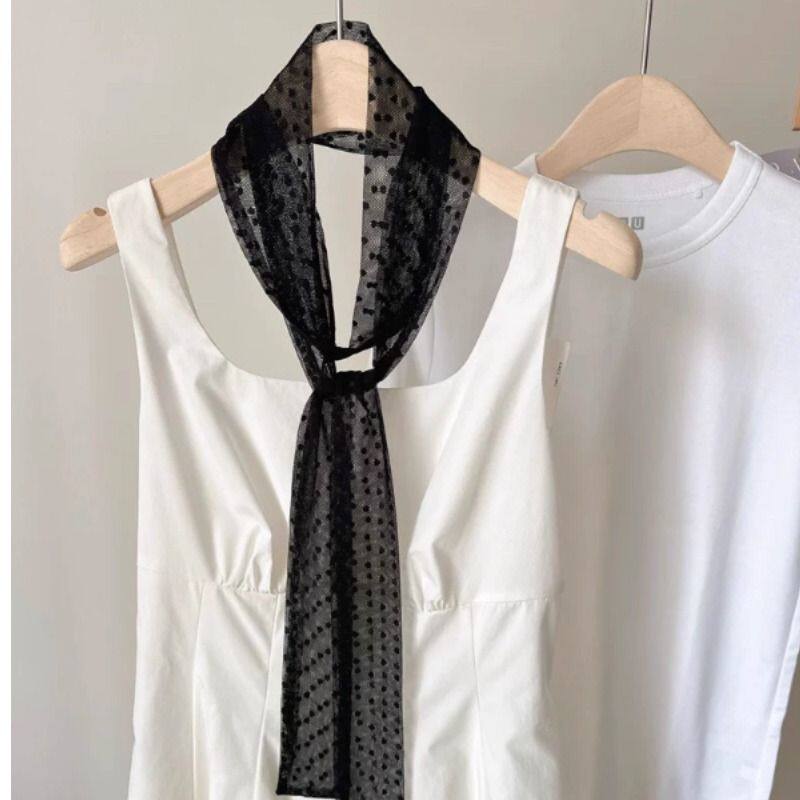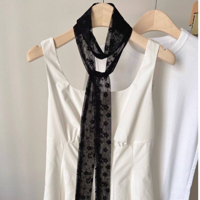 ins长条夏季丝巾女2025蕾丝新款高级感韩国白色飘带领巾配饰黑色