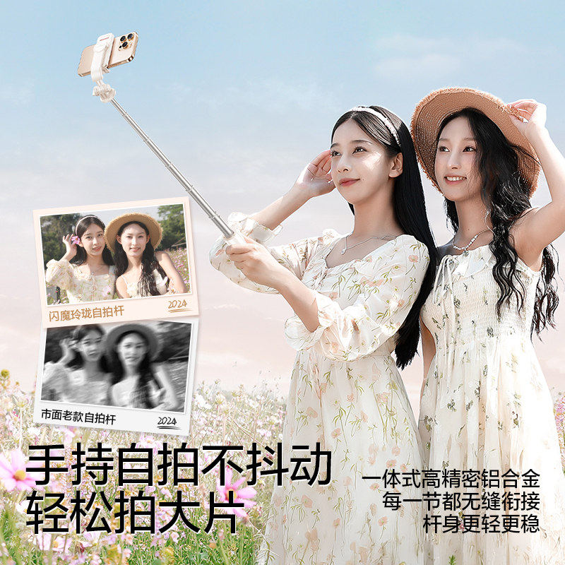 品胜迷你自拍杆2025新款落地三脚架旅游便携式拍照神器手机支架拍摄360度旋转手持防抖蓝牙vlog演唱会专用