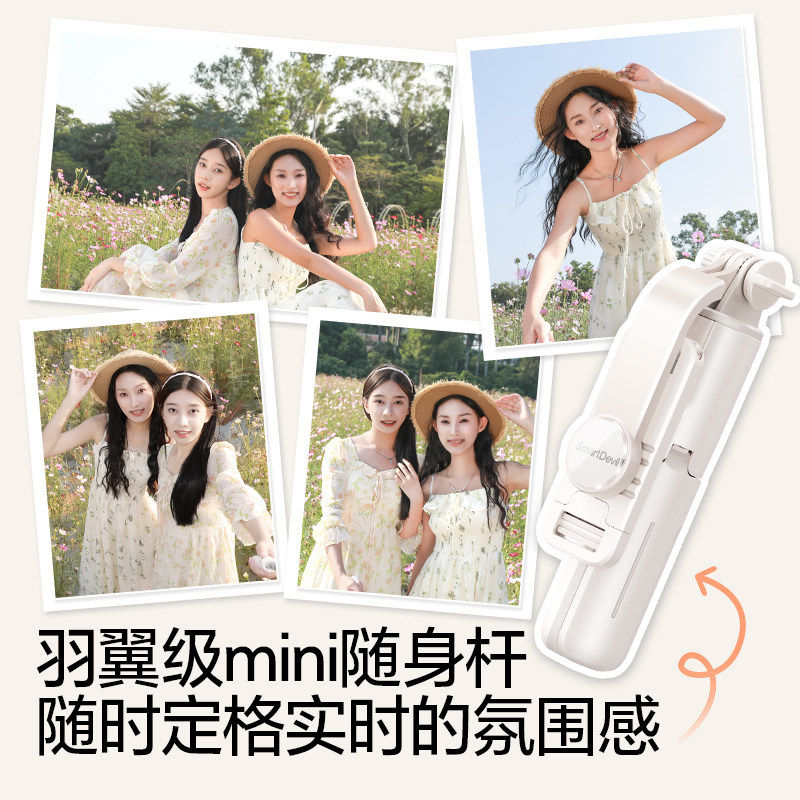 品胜小轻自拍杆迷你旅游便携2025新款通用手机自拍神器360度旋转落地三脚架手持mini蓝牙超轻自拍vlog拍照24
