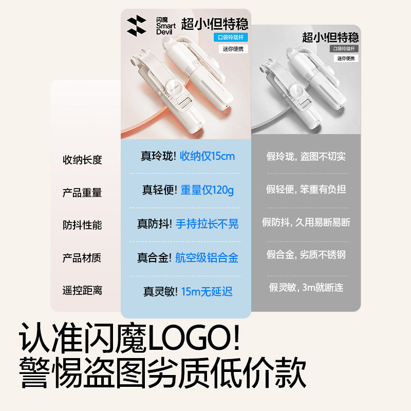 闪魔手机迷你自拍杆旅游便携可伸缩通用款360拍照神器落地三脚架
