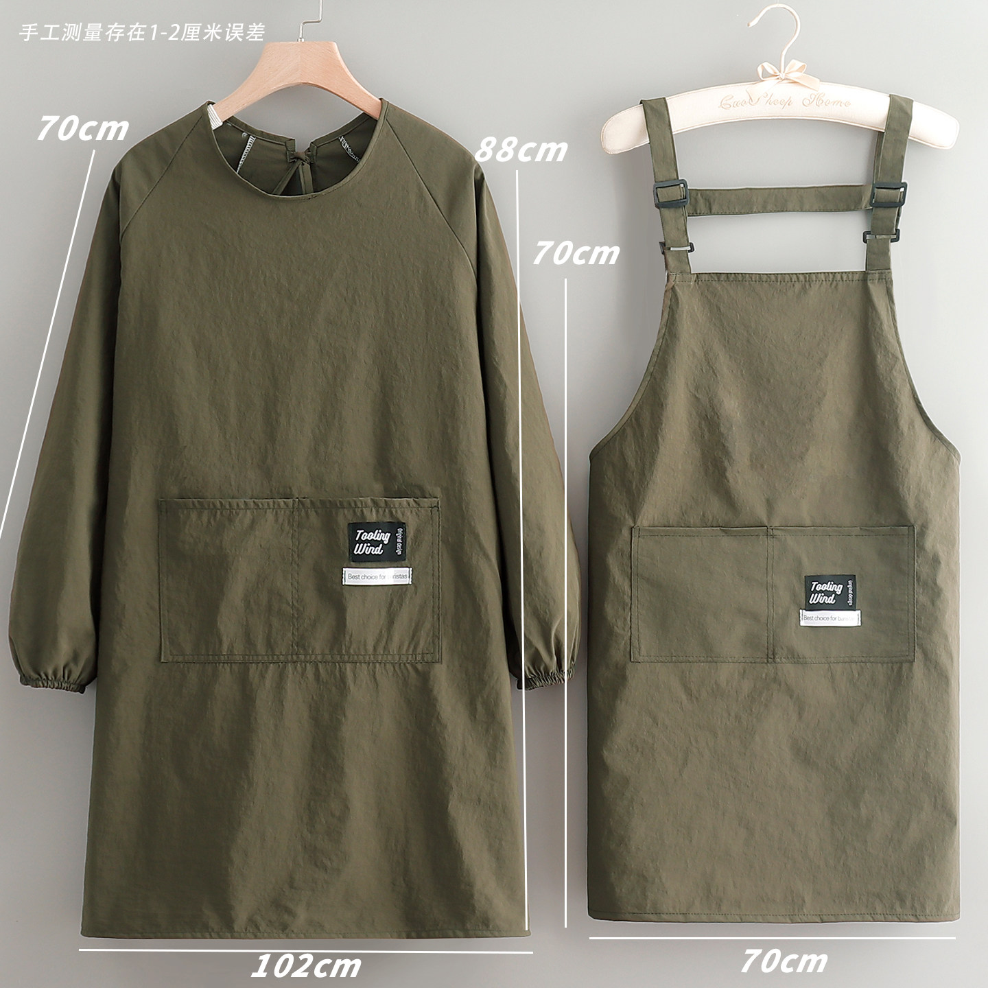 塔丝绒罩衣男家用厨房长袖围裙女理发店上班带袖工作服防水厨师