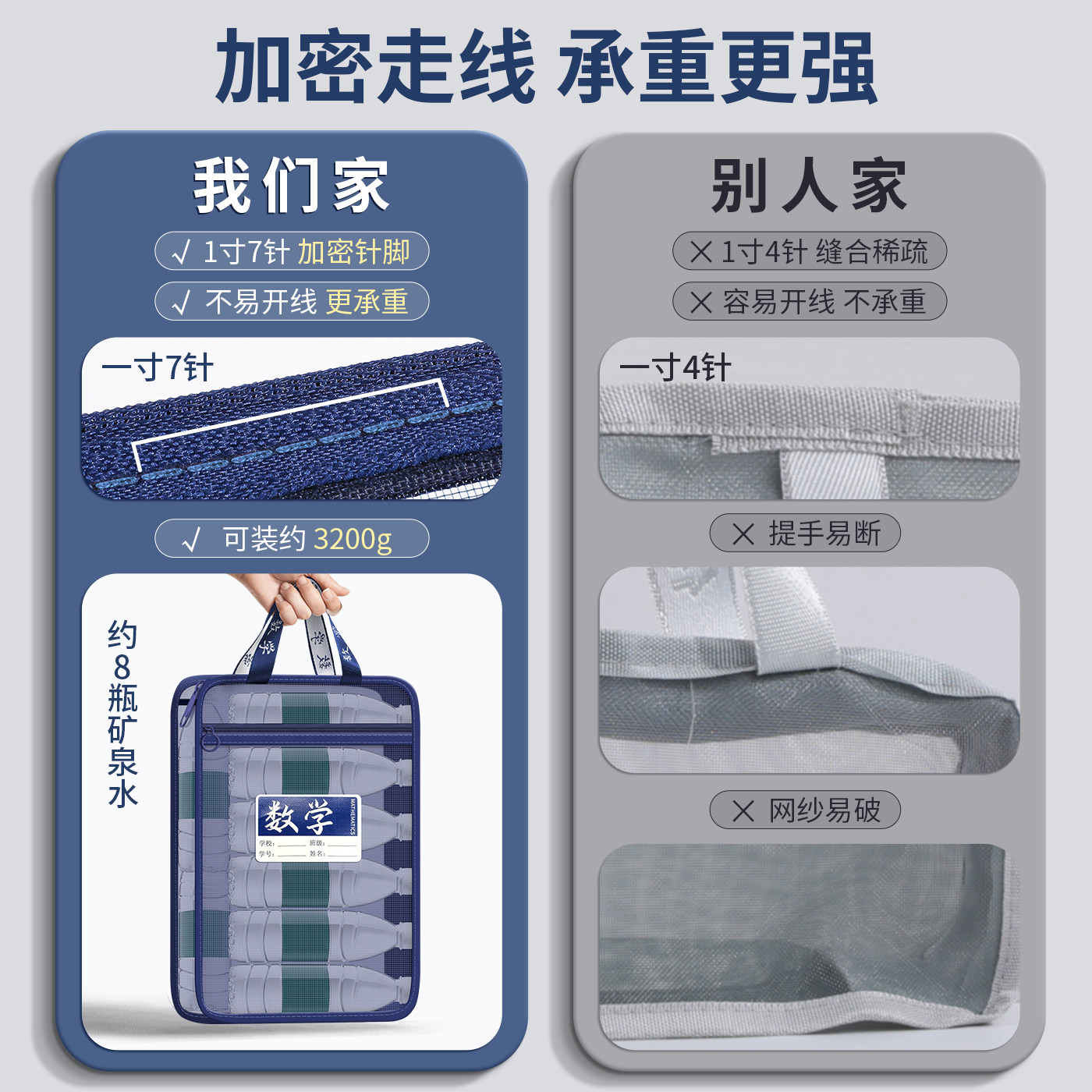 科目分类文件袋透明拉链式a4收纳拎书课外班作业男女孩书包小学初中生l型考试试卷学科补习网纱手提袋大容量